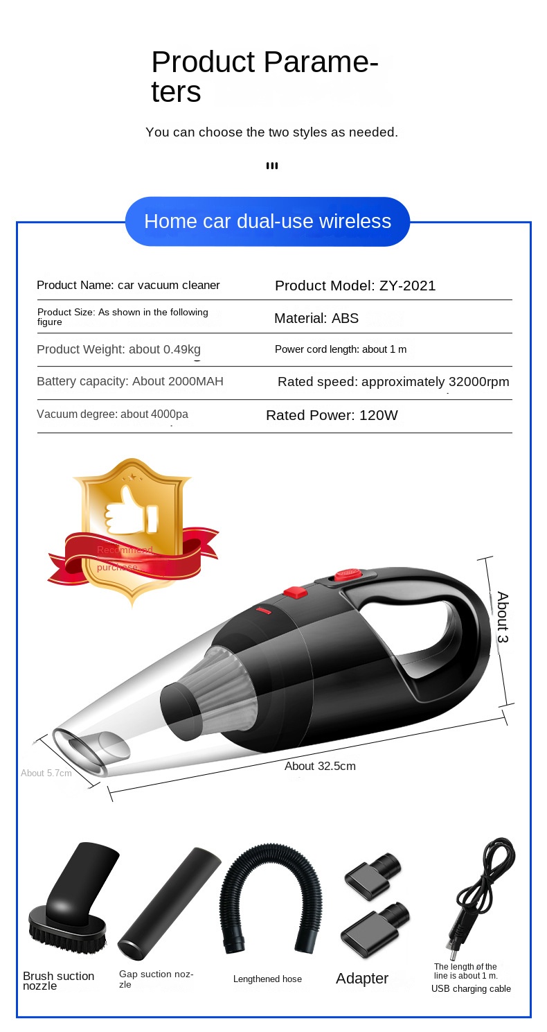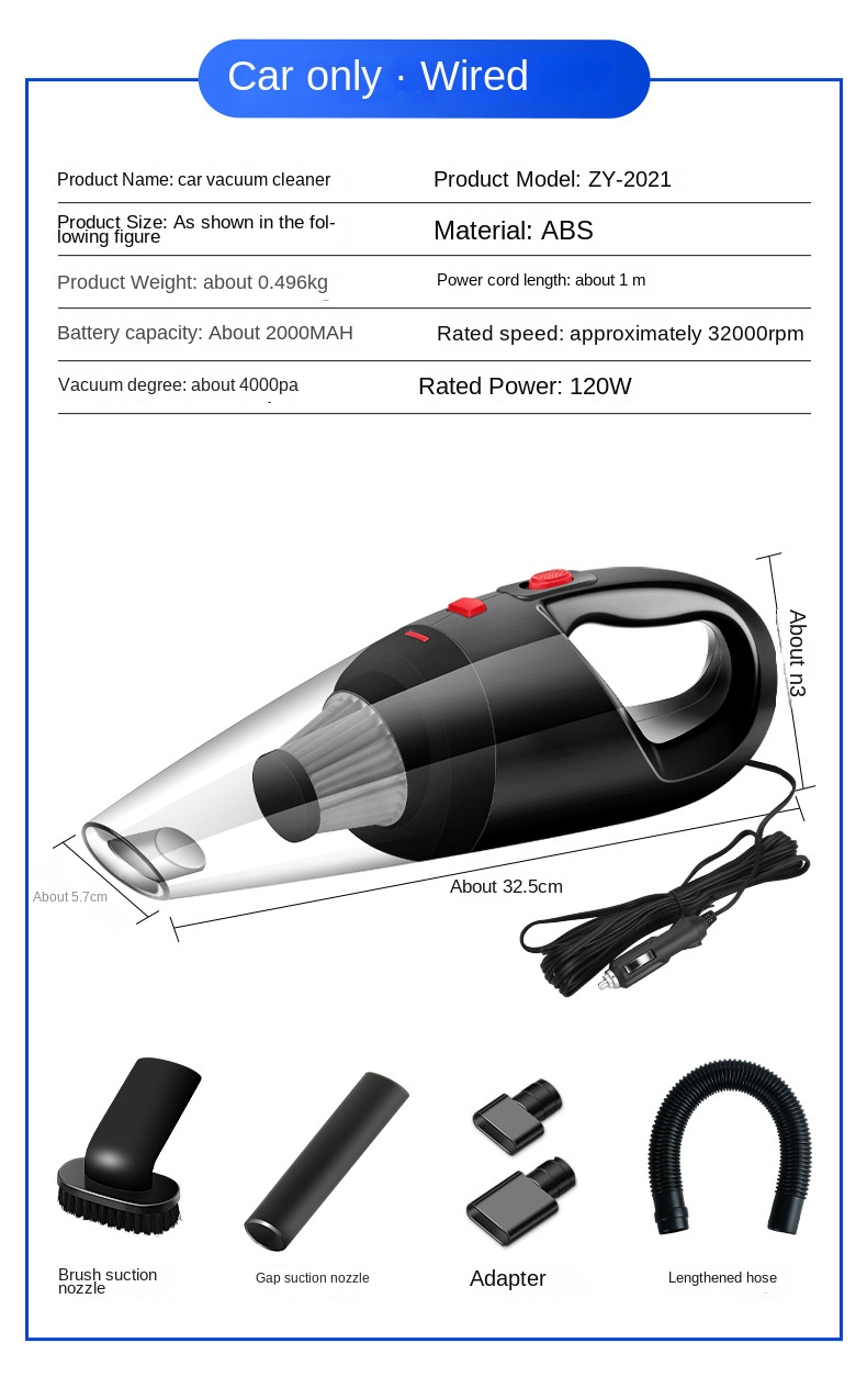 Car Vacuum Cleaner CZXCQ - Customized ABS Handheld Vacuum Cleaner with 32000 RPM, 12V Voltage, 120W Input Power, Suitable for Home and Car