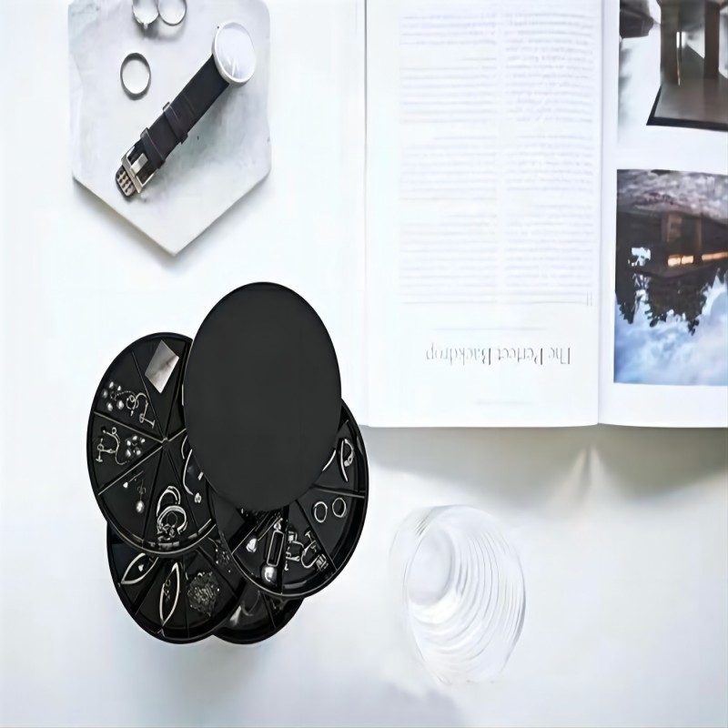 Rotating Mirror Jewelry Box with 4 Layers, Nordic Minimalist Style, Tabletop Jewelry Storage Box