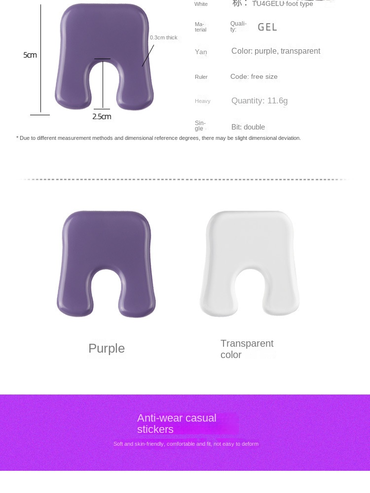 104GEL-U Type Foot Pad, Anti-Abrasion for Leather, Canvas and Other Shoes