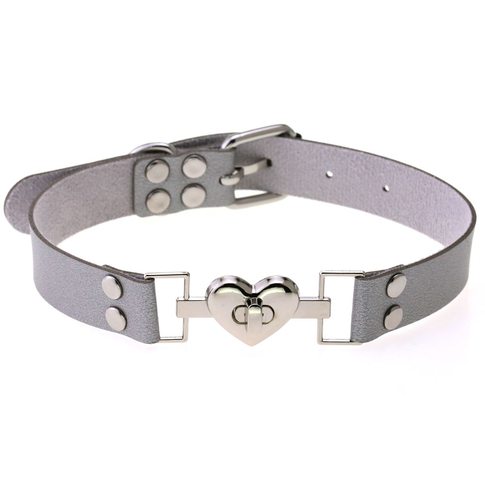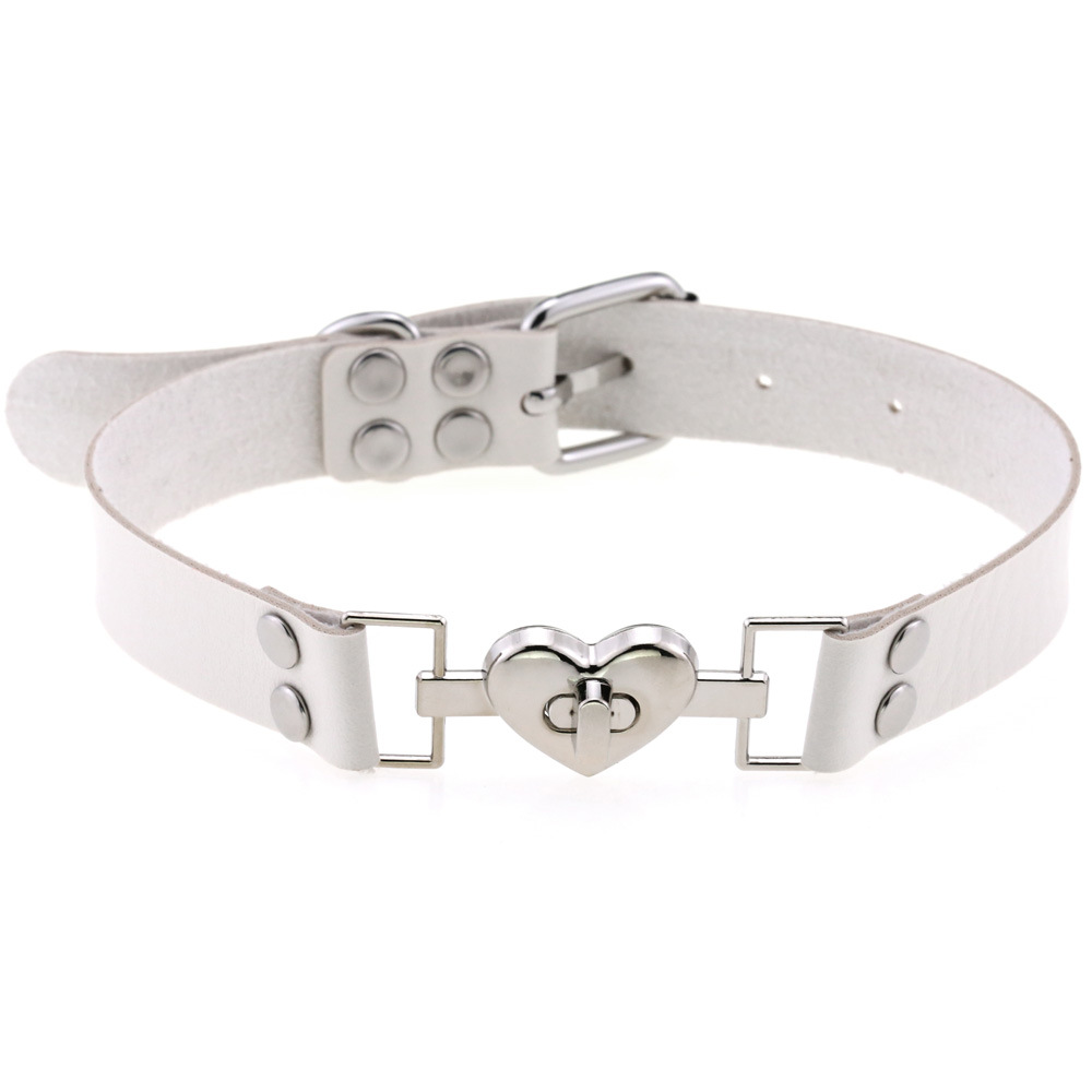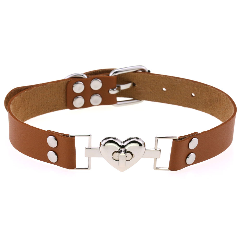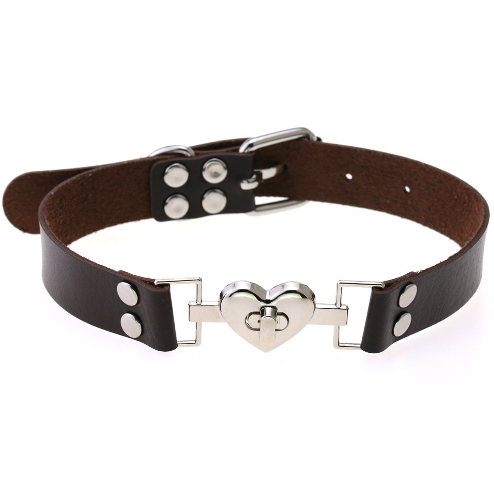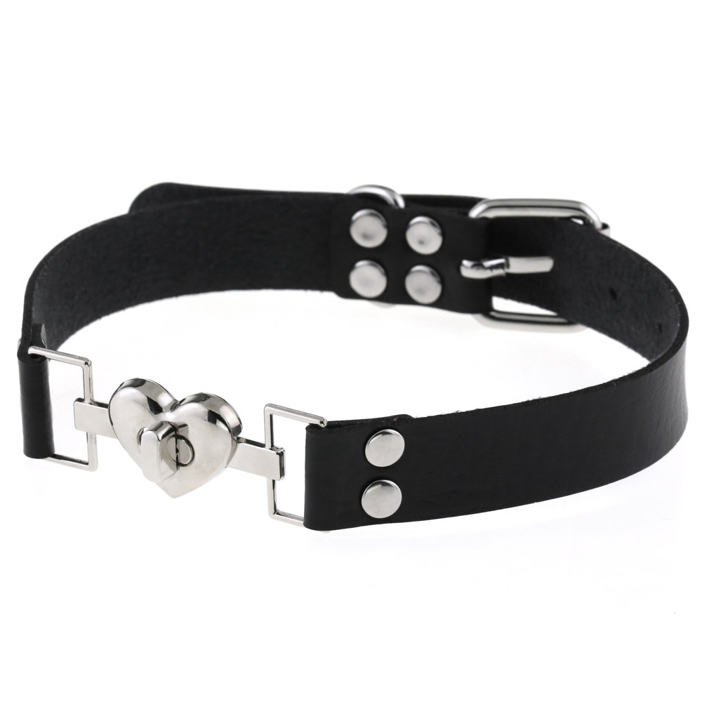Collar de cuero en forma de corazón de estilo punk con cierre de bloqueo de amor para mujeres