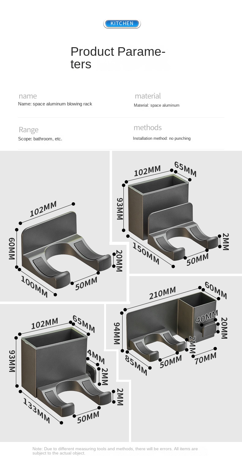 Modern Bathroom Hairdryer Rack with 20kg Load Capacity, Certification Free and Multiple Sizes