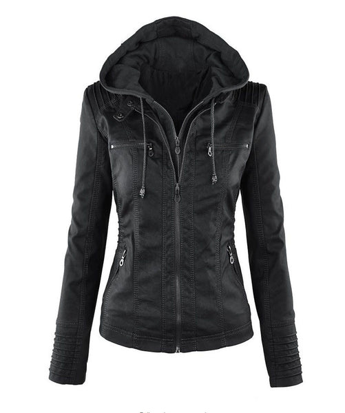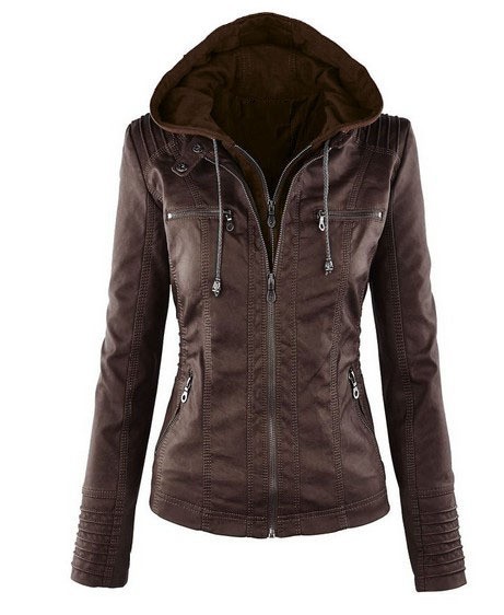 Chaqueta de manga larga con cremallera de color puro para mujeres con cuero PU de estilo inglés 121#