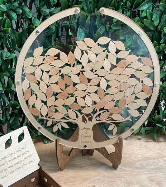 Libro de visitas de boda moderno en forma de hoja con letrero de amor para la ceremonia de la boda y la decoración de la fiesta de cumpleaños