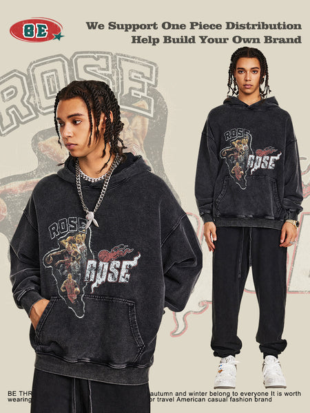 BE Men's 2024 Autumn Streetwear Vintage NBA Floral Print Hoodie