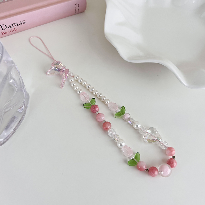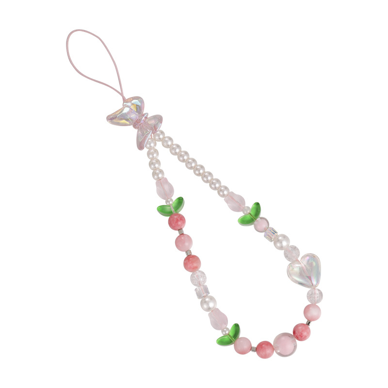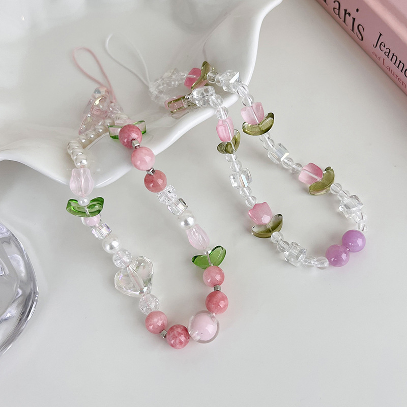 Cadena telefónica floral de moda hecha a mano con cuentas acrílicas para niñas