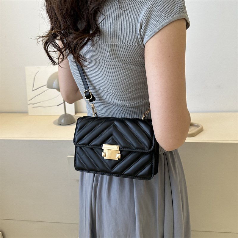 Bolso cuadrado Pu de ocio urbano de moda con cerradura y bolsillo