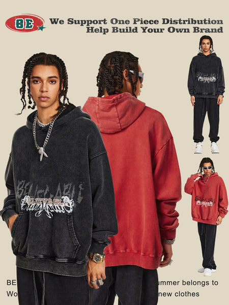 BE Men's | 2024 Autumn Vintage Graffiti Washed Out Hiphop Red Loose Hoodie