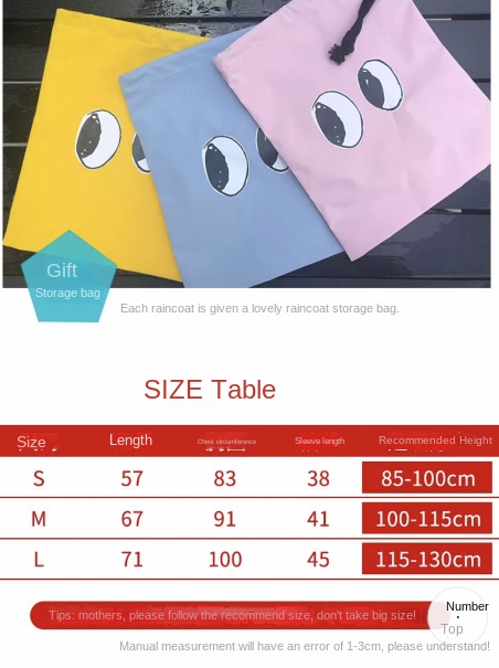 Children's Cute Cartoon Waterproof Raincoat with PU Waterproof Layer