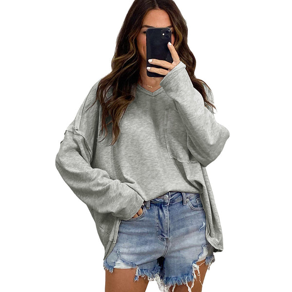Camiseta gris de longitud media para mujeres con cuello redondo, manga regular y estilo europeo