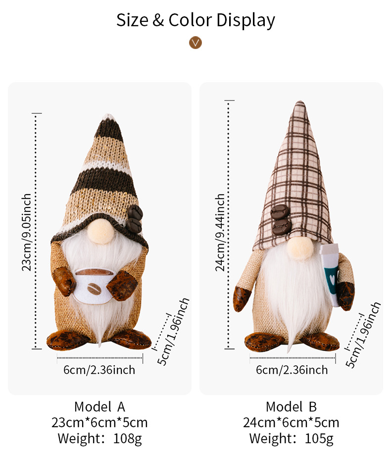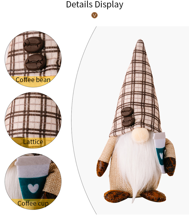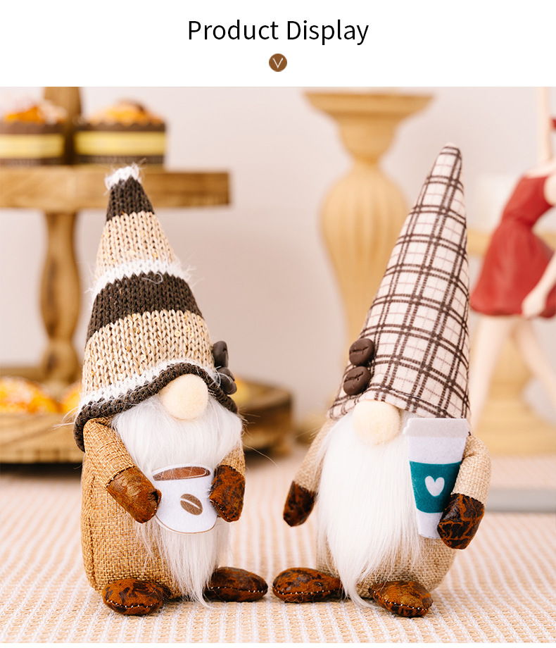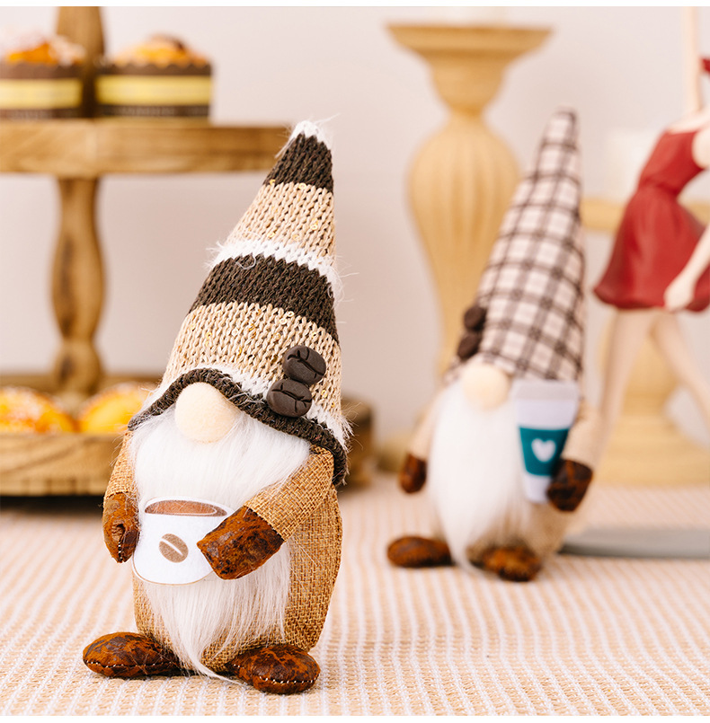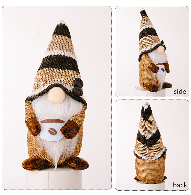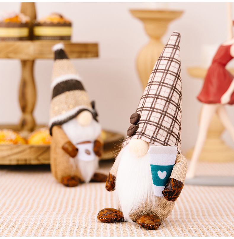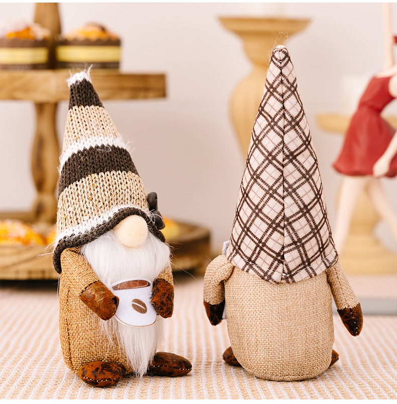 New Coffee Rudolph Doll Dwarf Elf Decorative Figurine for Window Display