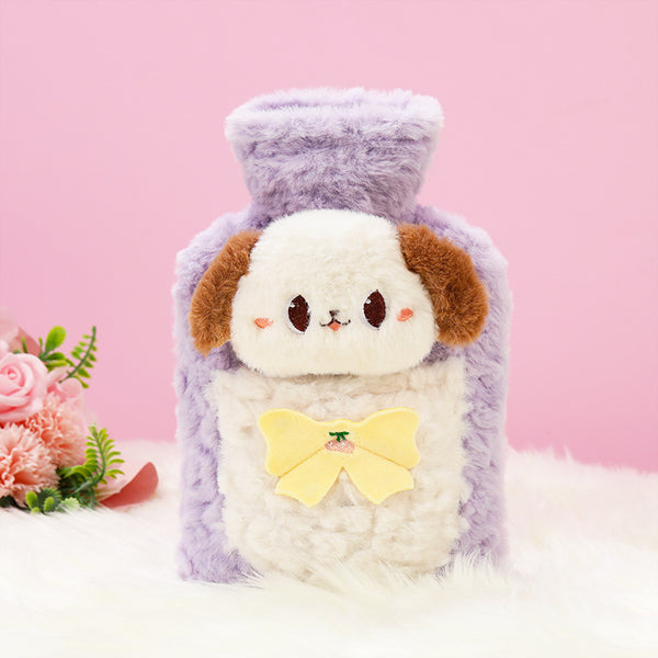 Cute Soft Rabbit Fur Dog Doll Hot Water Bottle with Hand Warmer for Girls