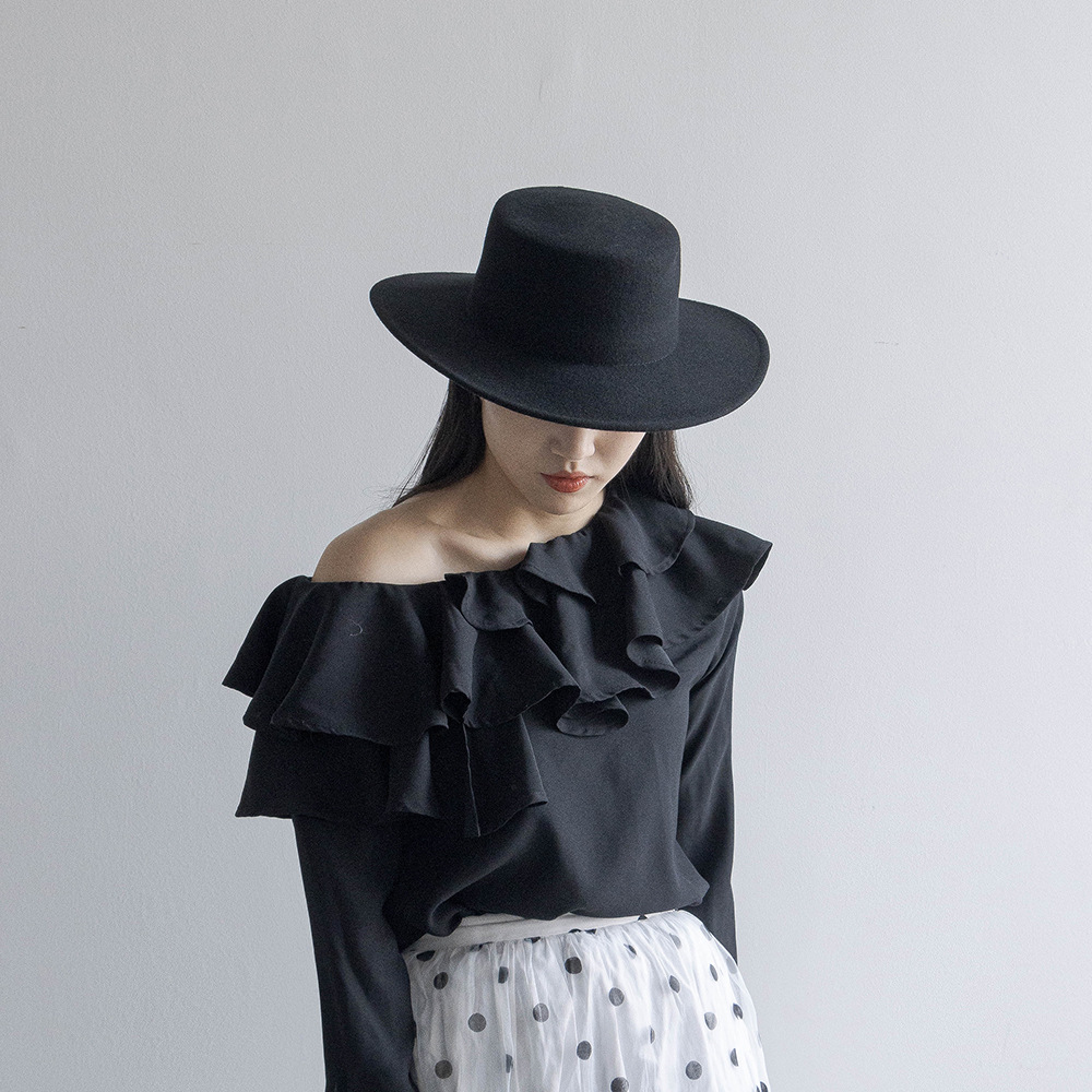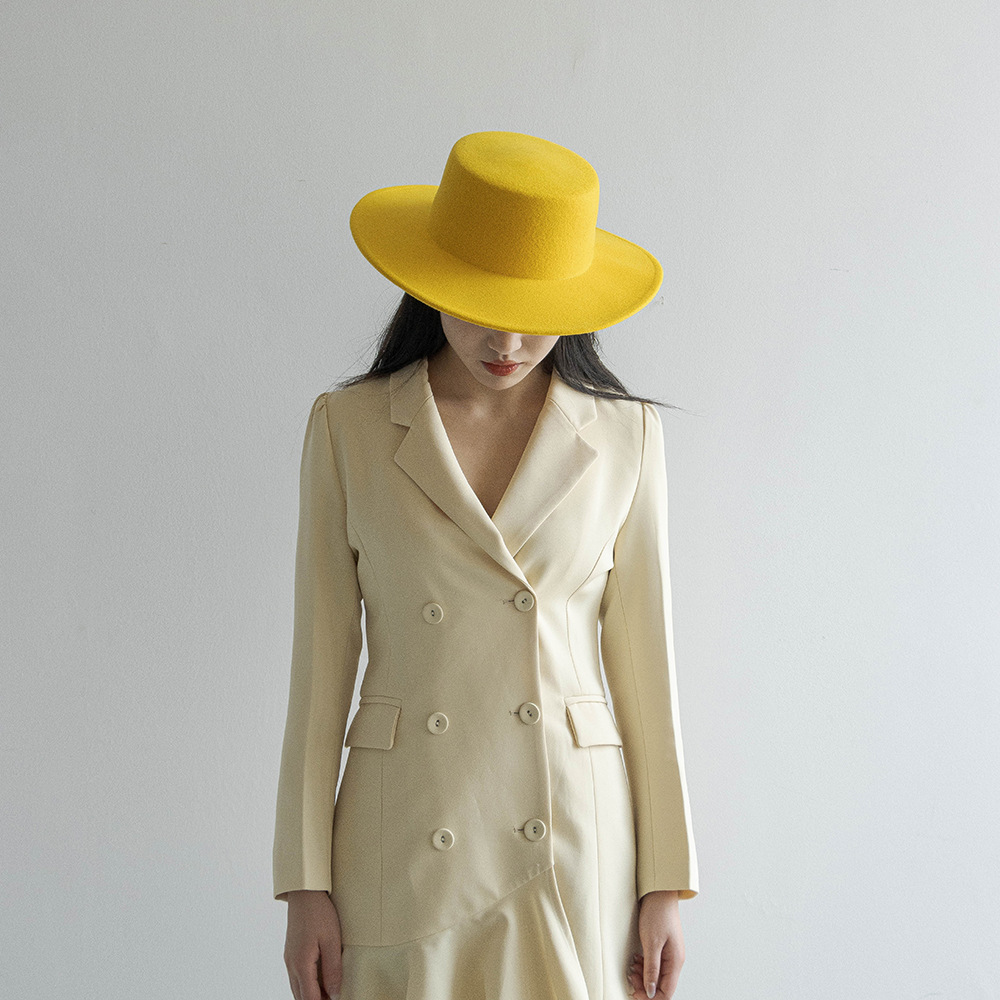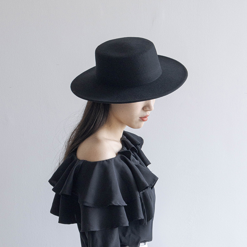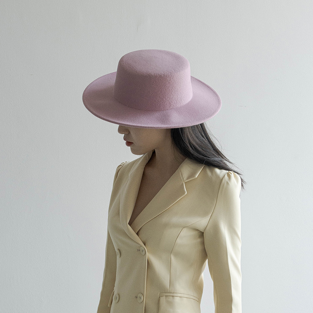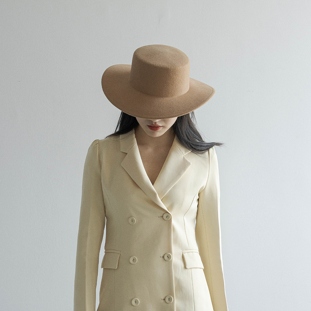 Women's Korean Style Woolen Flat-top Hat for Autumn and Winter, 100% Wool, Breathable and Windproof