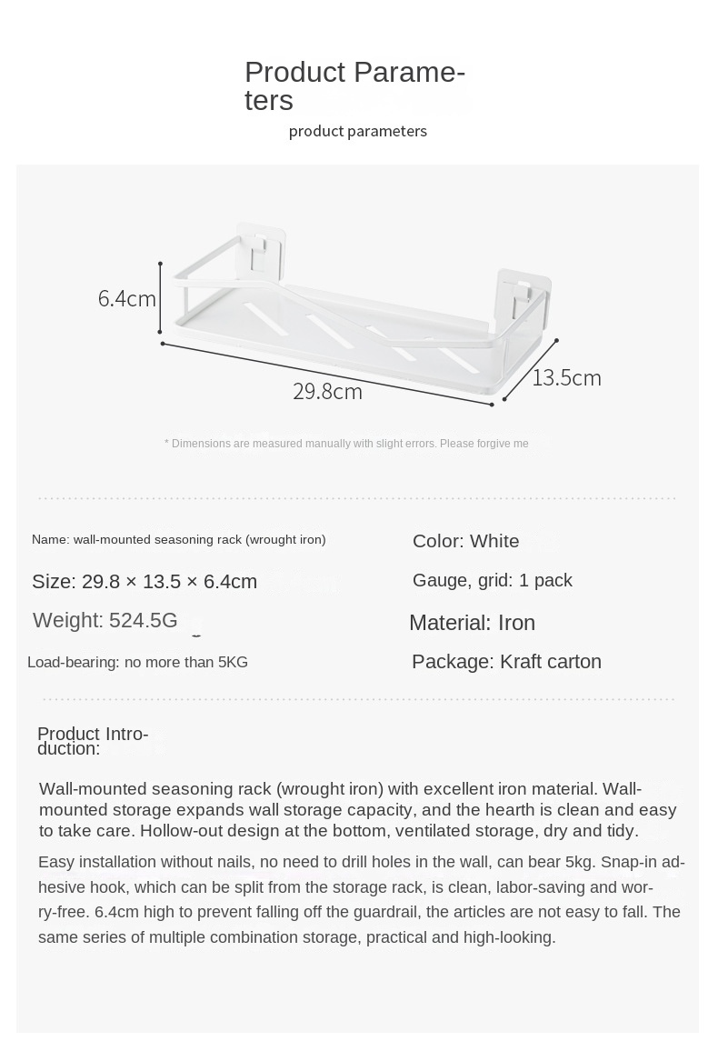 Modern Kitchen Spice Rack with Iron Material, No Drilling, Contemporary Style and Free Punching