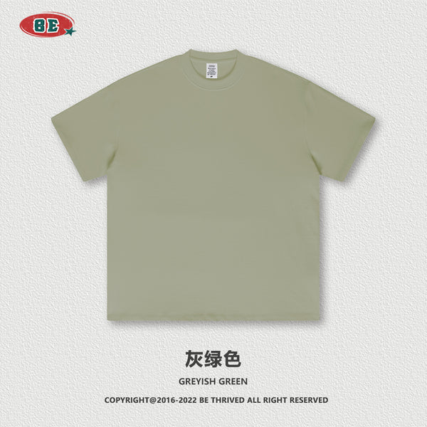 Camiseta de Moda para Hombre 425G Color Puro Fuera del Hombro Manga Corta Suelta Ropa de Calle con Ajuste Camiseta para Pareja