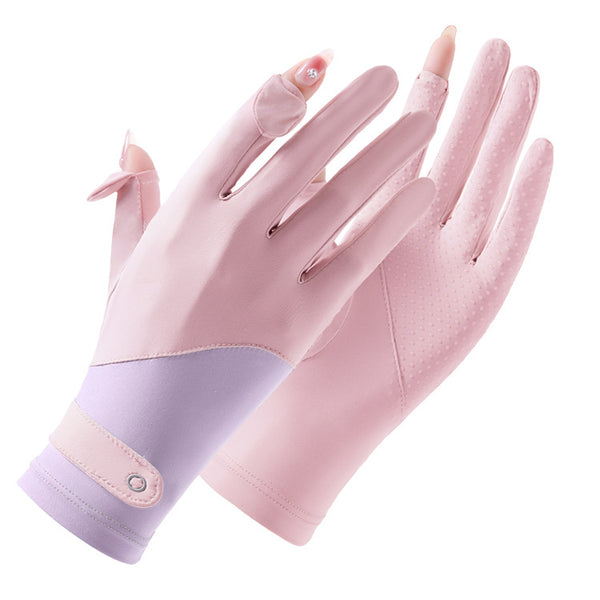 Women's Summer UV Protection Thin Breathable Ice Silk Driving Gloves Anti-slip Touch Screen Gloves