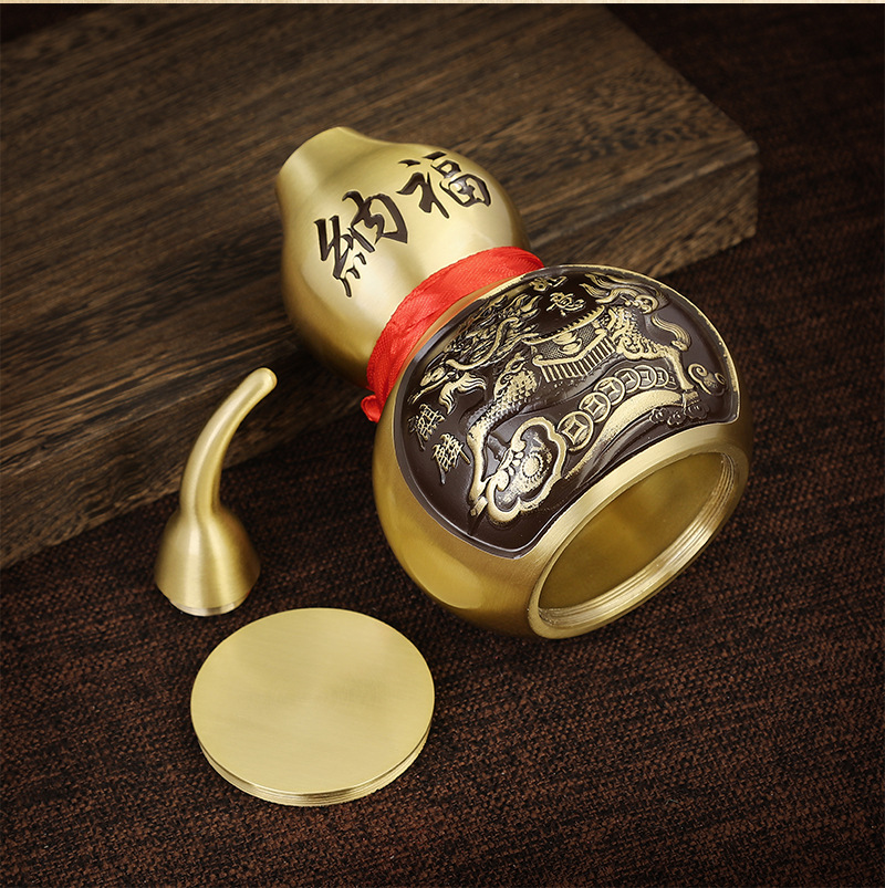 Pure Brass Open Gourd Decoration for Home Office Decoration Gift