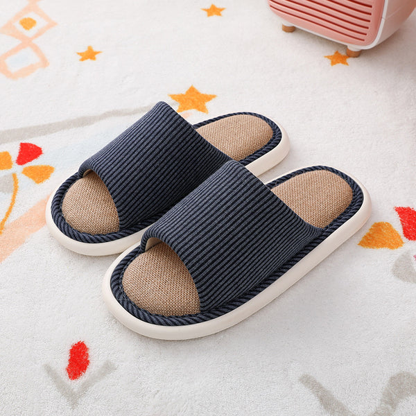 Japanese Linen Slippers for Couples - Breathable EVA Sole, Slip-On Clog Style, Perfect for All Seasons