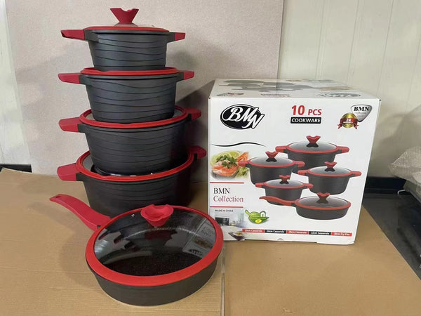 BMN 10-Piece Cookware Set Maifan Stone Non-stick Aluminum Cookware Combination Soup Pot Set