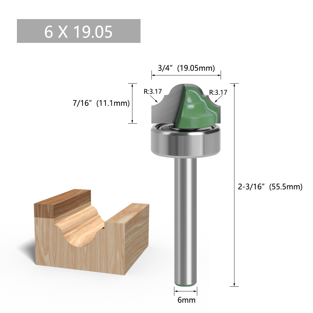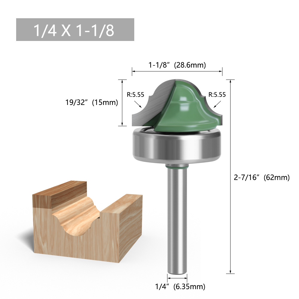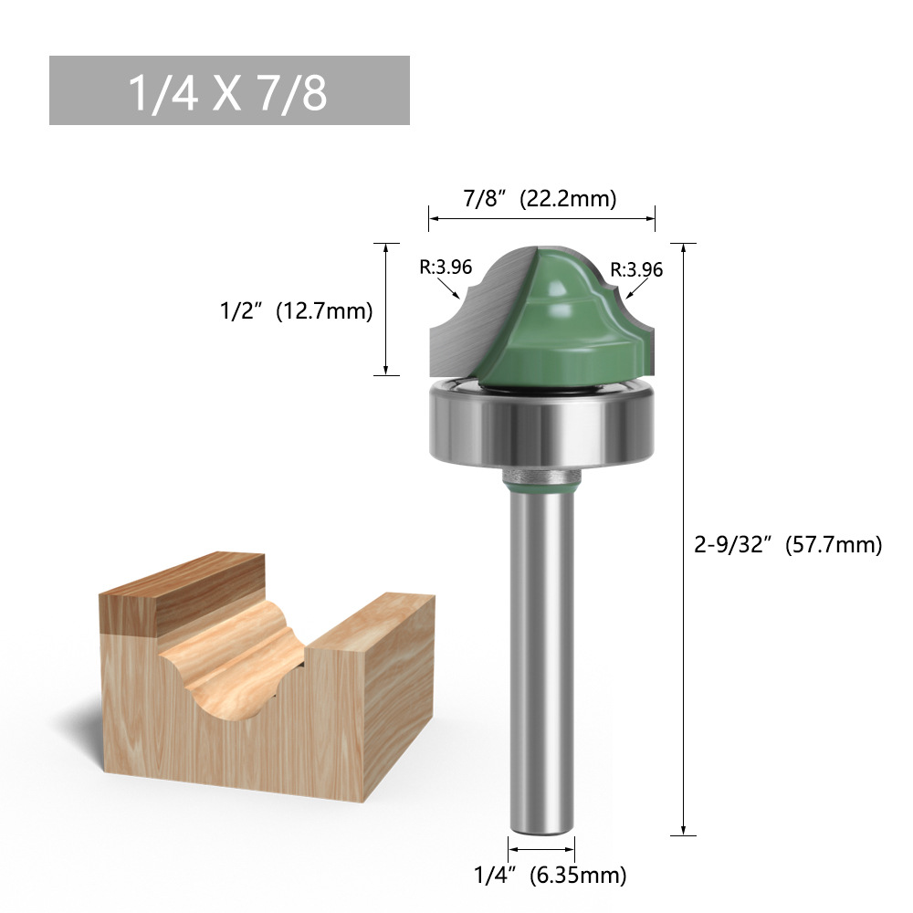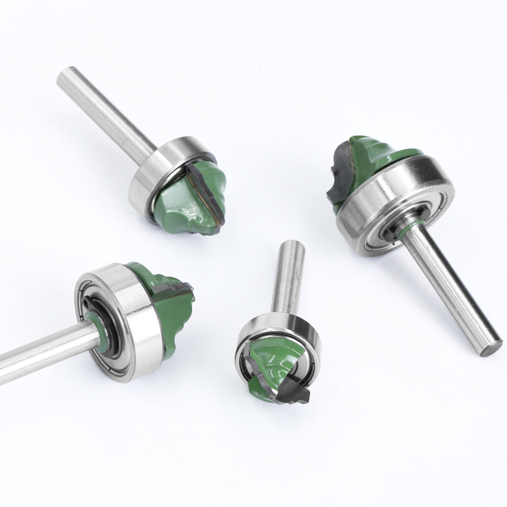 6.35mm Shaft 4pcs Bearing Router Bit Set with Double Sided Frame for Woodworking and Door Line Grooving