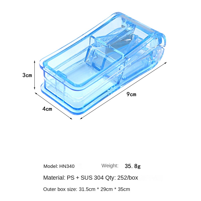 PS Transparent Color 304 Stainless Steel Cutter Pill Splitter Storage Portable Pill Cutter