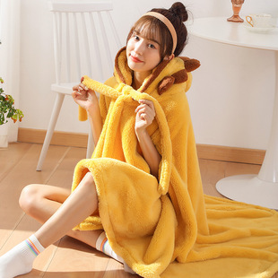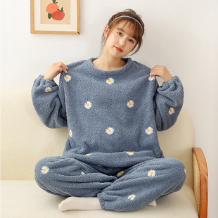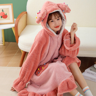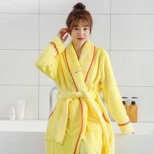 Women Coral Fleece Bathrobe with Embroidery, 95% Polyester, Suitable for Autumn