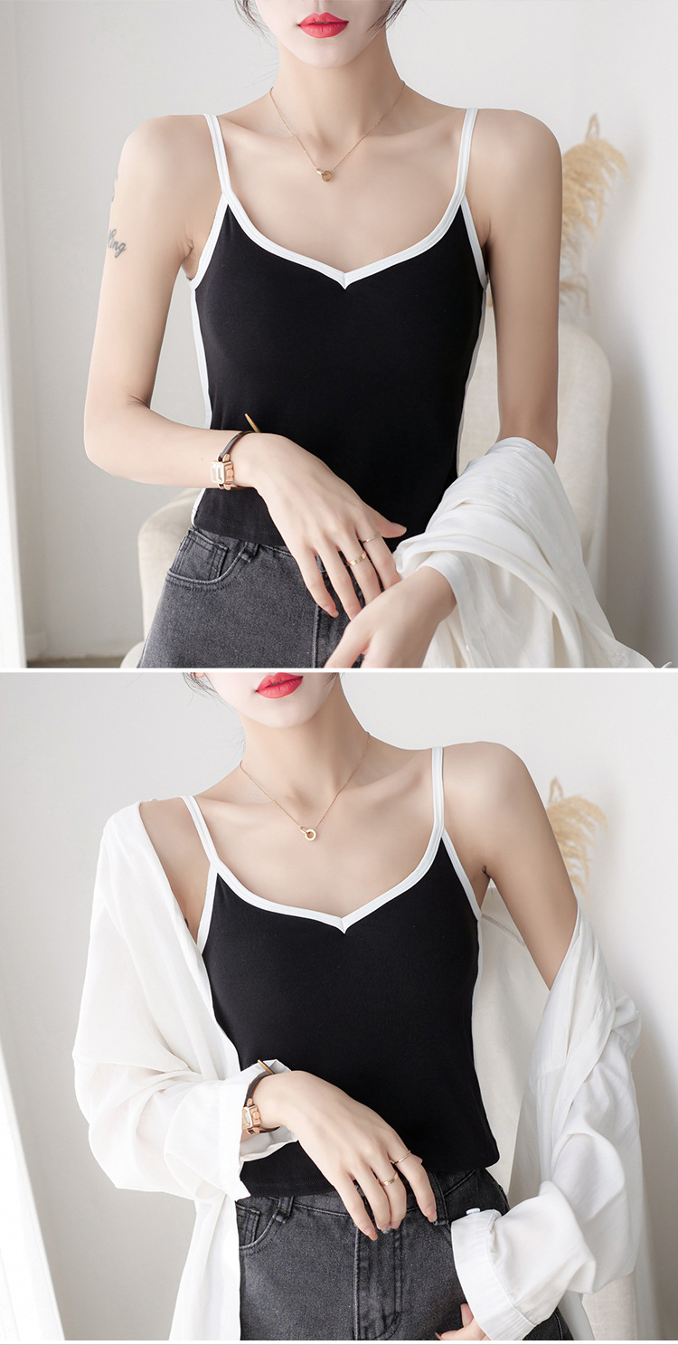 Chic Strappy Back Tank Top - Japanese Style, Loose Fit, 95% Cotton, Double Shoulder Straps, Korean Style Wind