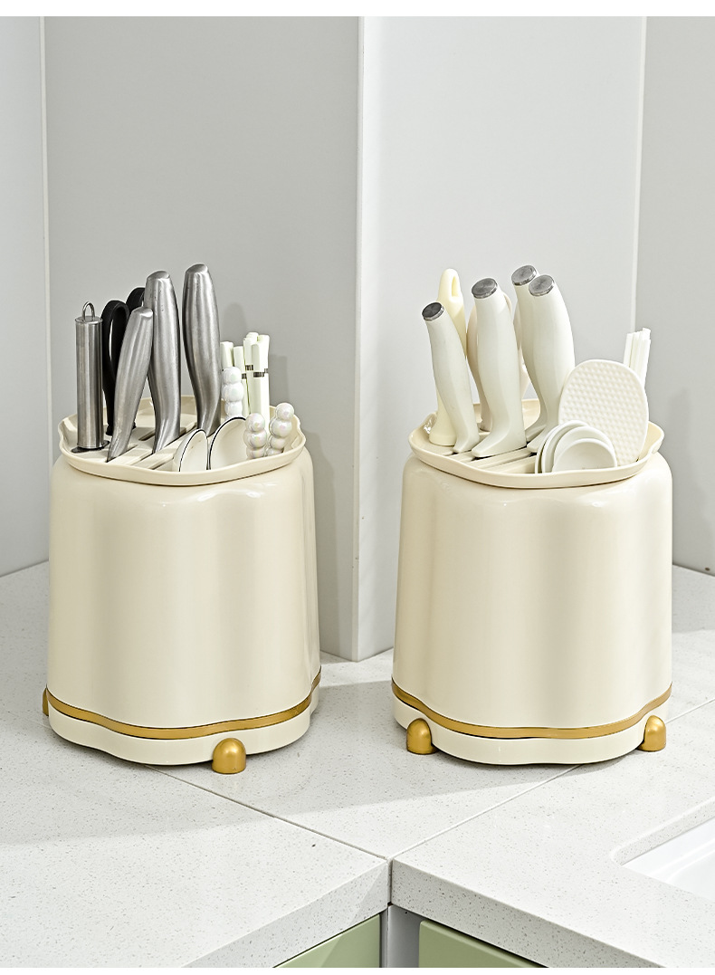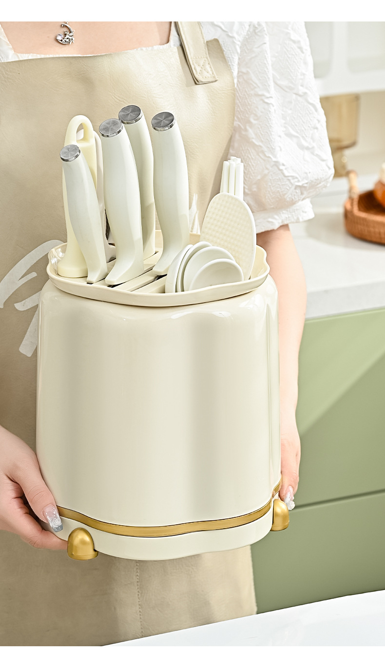 Modern Luxury Multi-Function Rotating Knife Rack Kitchen Storage Organizer