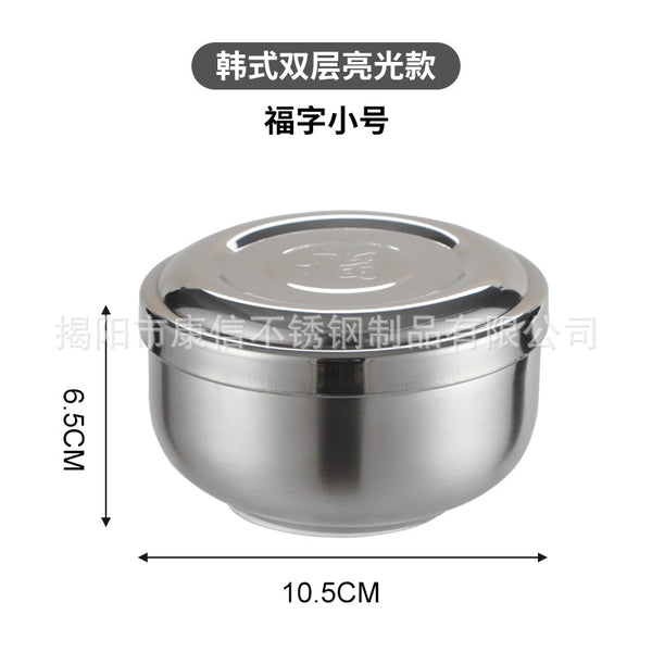 Double-Layer Stainless Steel Bowl with Lid for Kids and Adults