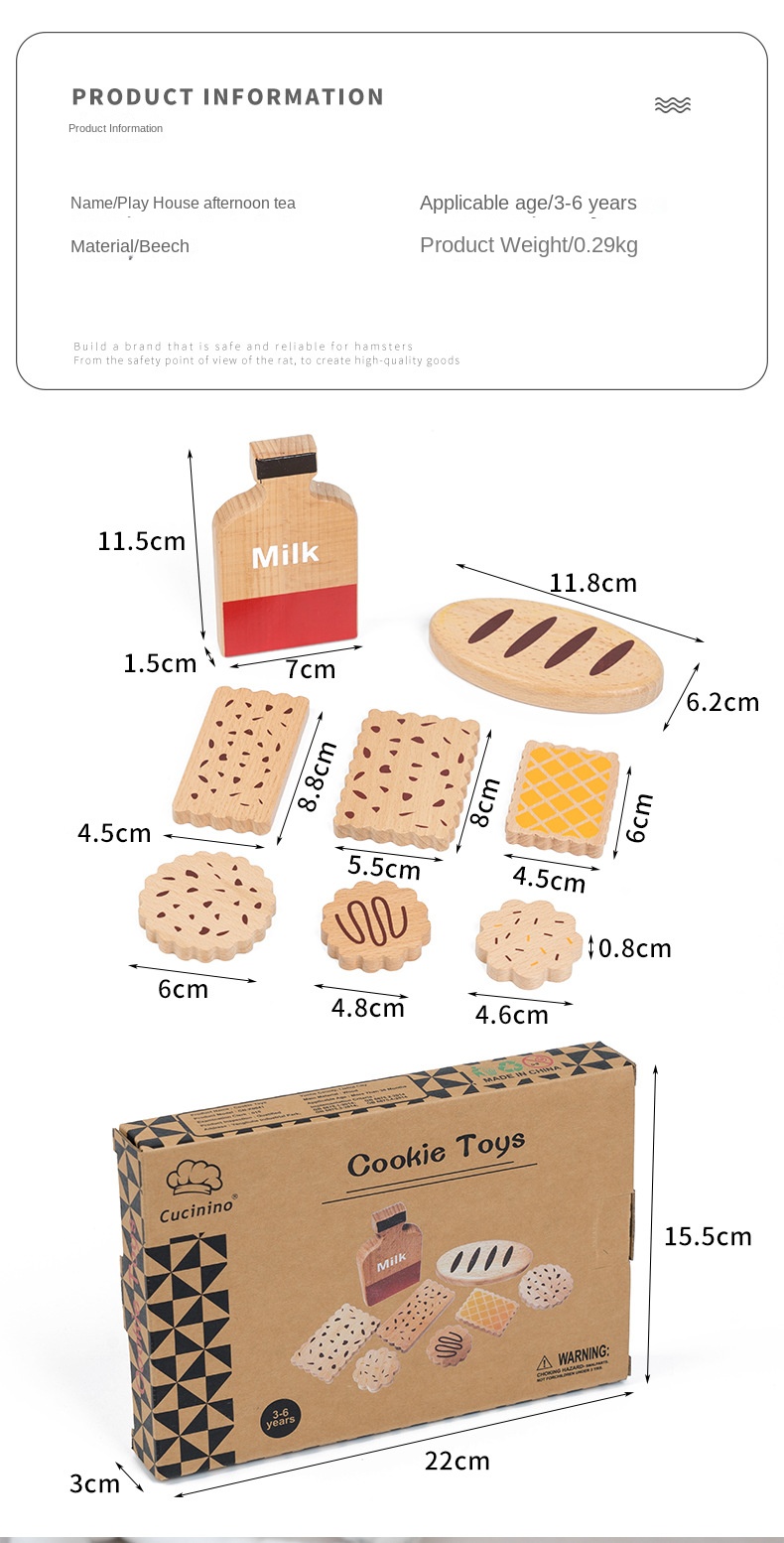 Wooden Children's Cookie Set Magic Wand Kitchen Pretend Play Toy Dessert Snack Combo for 4-6 Years Old
