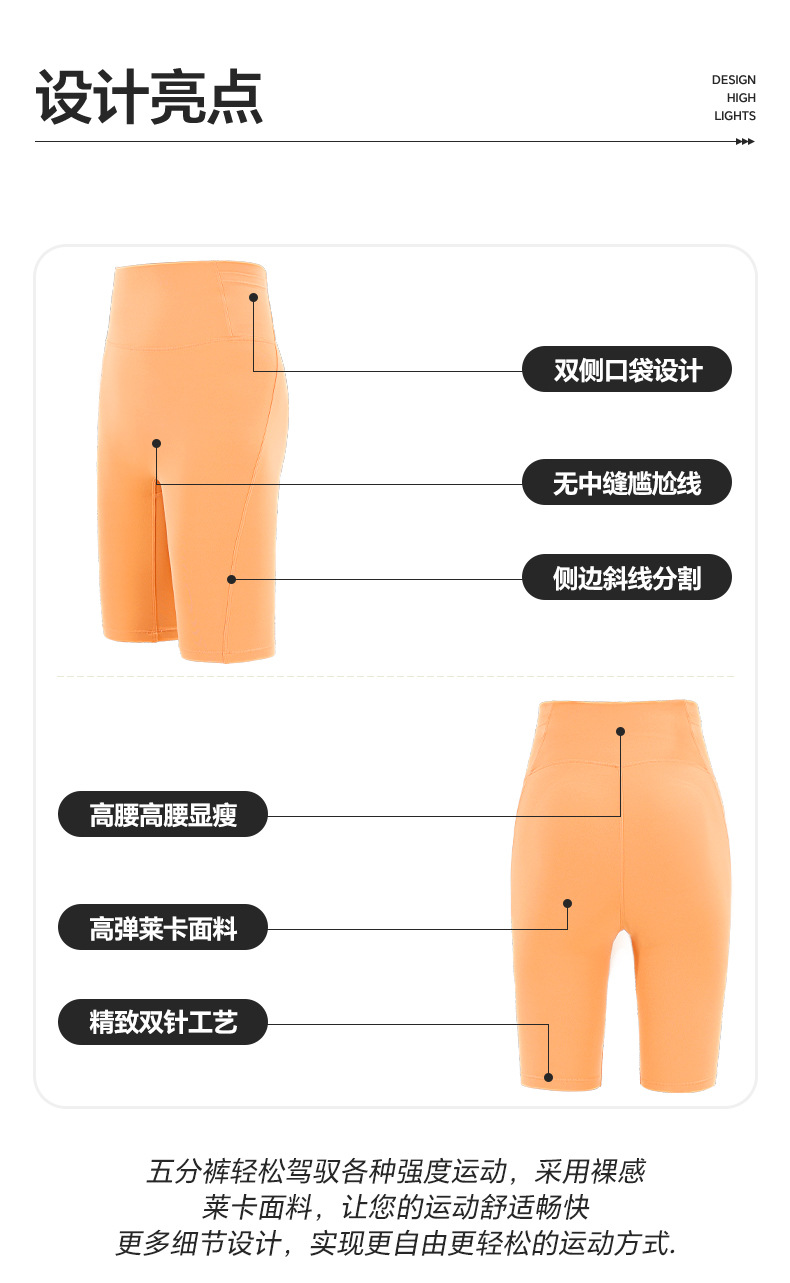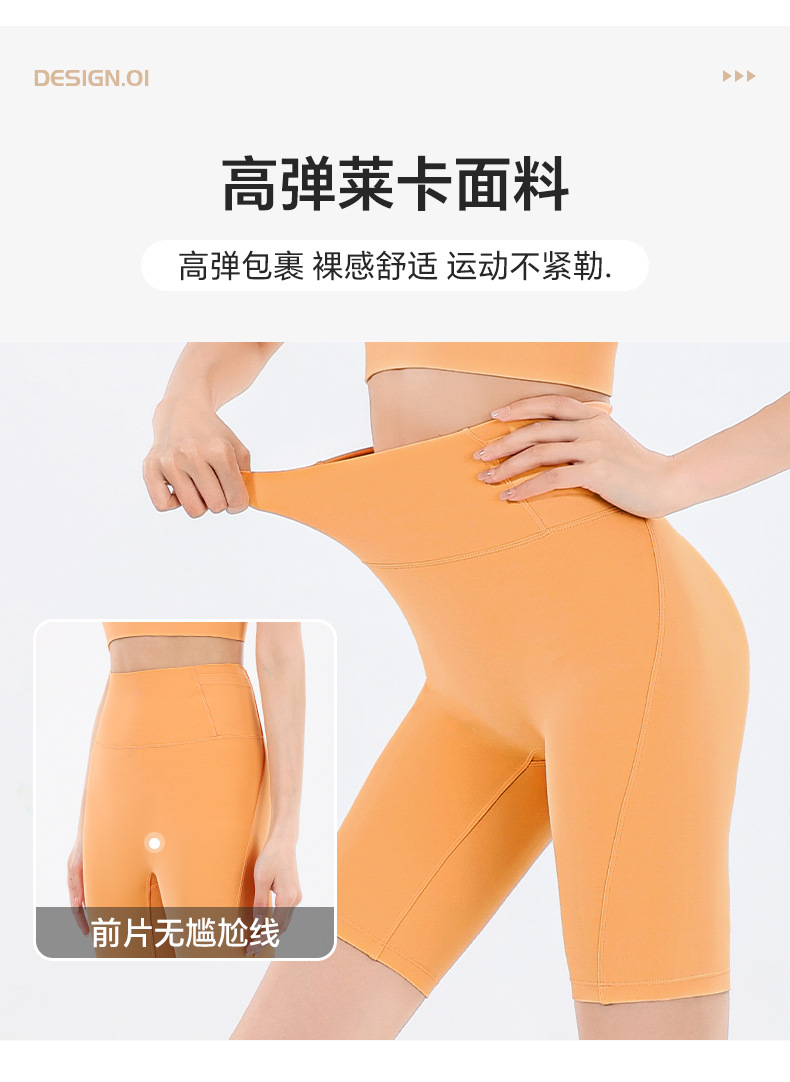 Yoga Pants Lecca Naked Feeling No Embarrassment High Waist Lift Hip Movement Five-Point Running Fitness Riding Shorts for Women