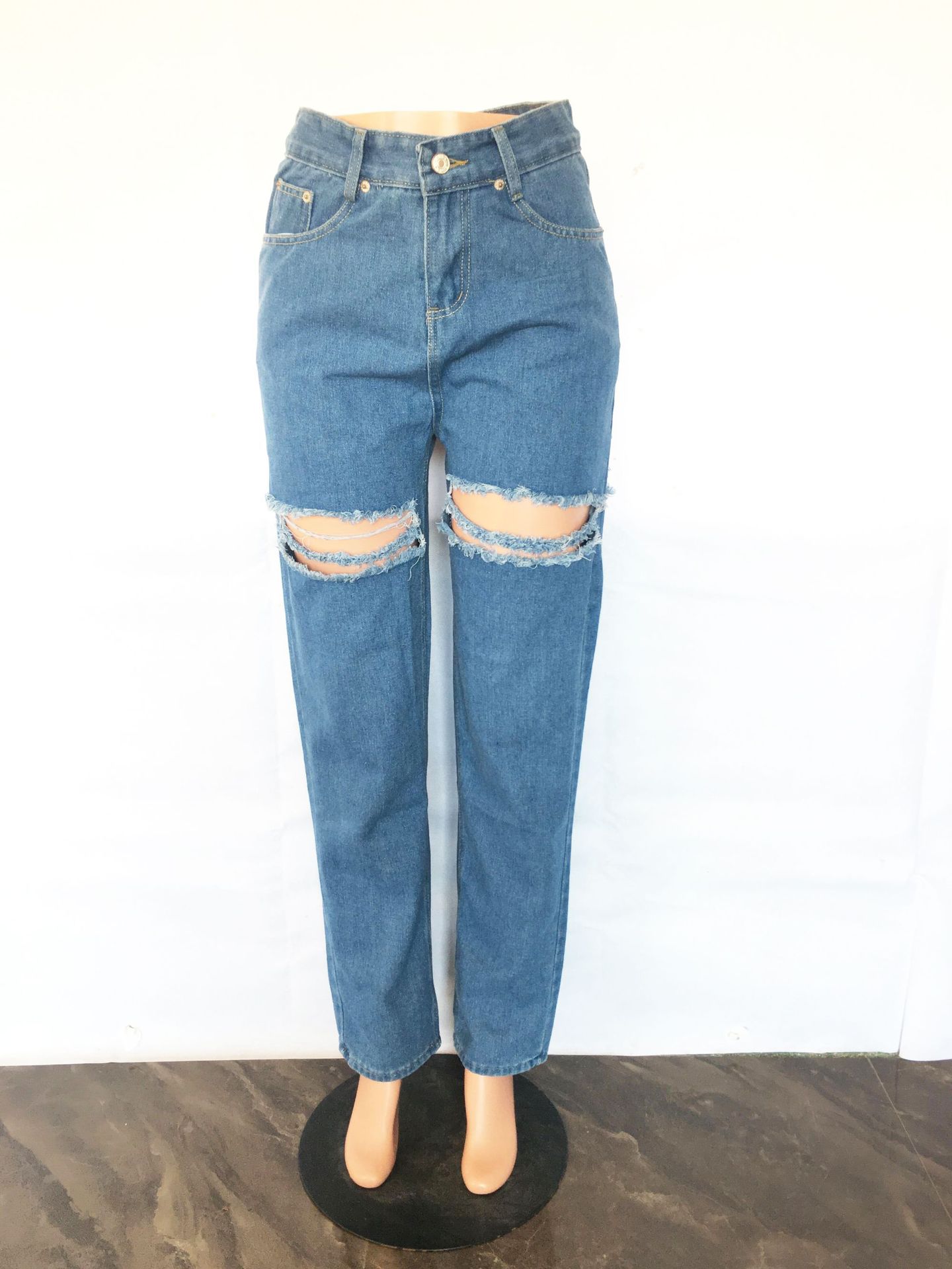 Women's New Cowboy Jeans Hot Selling Loose High Waist Wide Leg Ripped Jeans Casual Pants