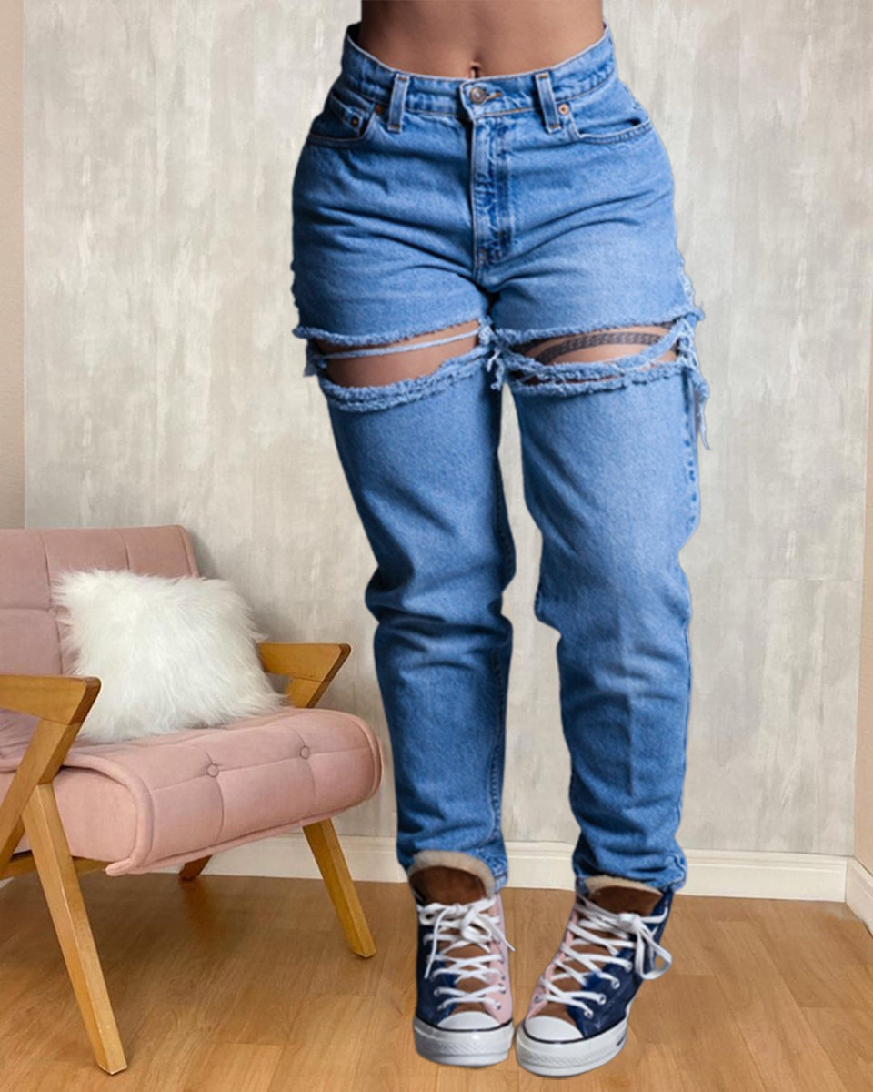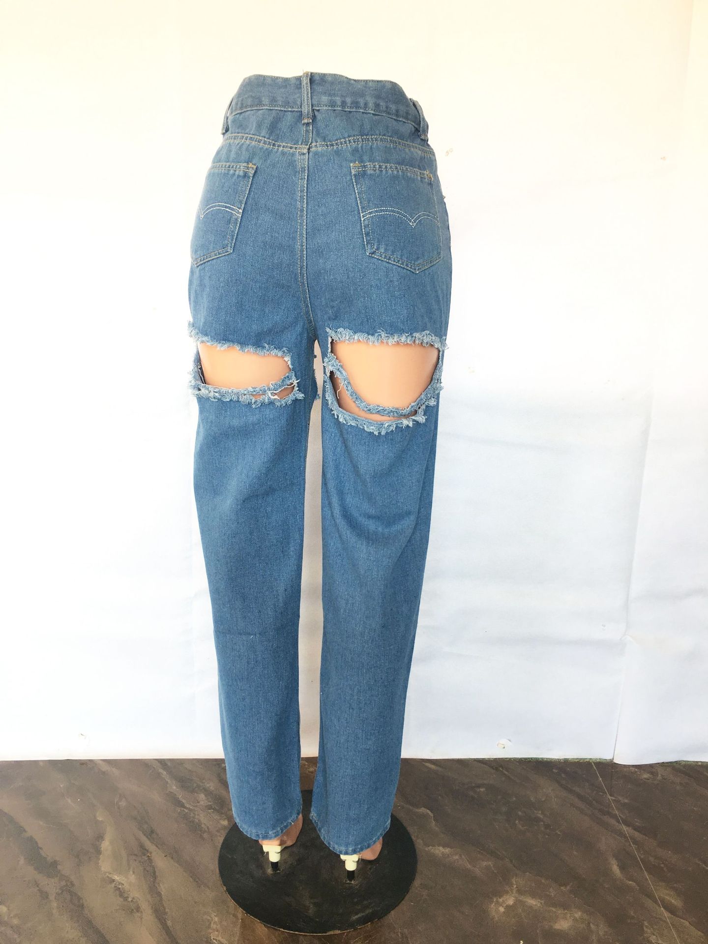 This is a perfect pair of jeans for any occasion! It is made of high-quality denim fabric, which is comfortable and breathable. It features a high waist, wide leg and ripped details, making it fashionable and stylish. The hand-made embroidery adds a unique touch to the jeans. It is suitable for all body types, and is perfect for any casual or formal event. Get this pair of jeans now and you won't regret it!