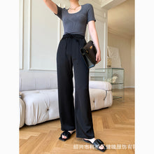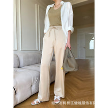 Women Summer New High Waist Slim Fit Polyester Blend Pleated Wide Leg Ice Silk Straight Trousers