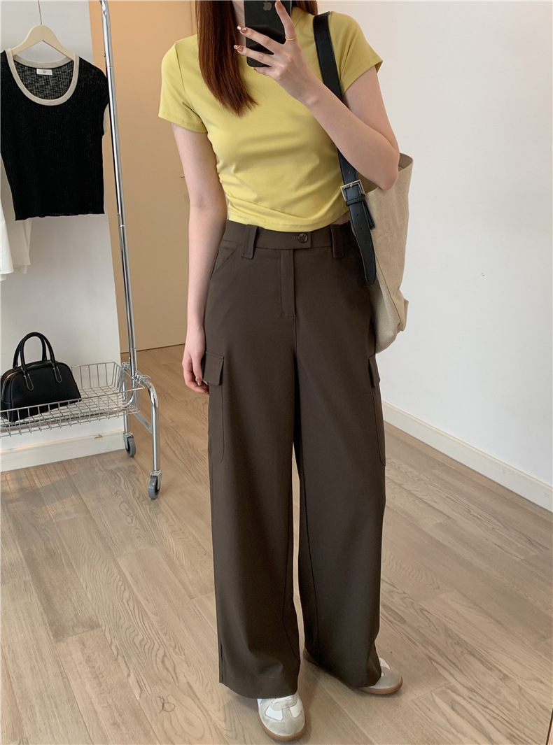 {"Style":"Casual","Thickness":"Thin","Elasticity":"Slight Elasticity","Pants Type":"Straight Leg","Style Type":"Japanese and Korean Casual","Waist Type":"High Waisted","Fabric Name":"Polyester","Pant Length":"Long Pants","Main Fabric Composition":"Polyester (Polyester Fiber)","Main Fabric Composition Content":"70% (inclusive) - 80% (exclusive)"}