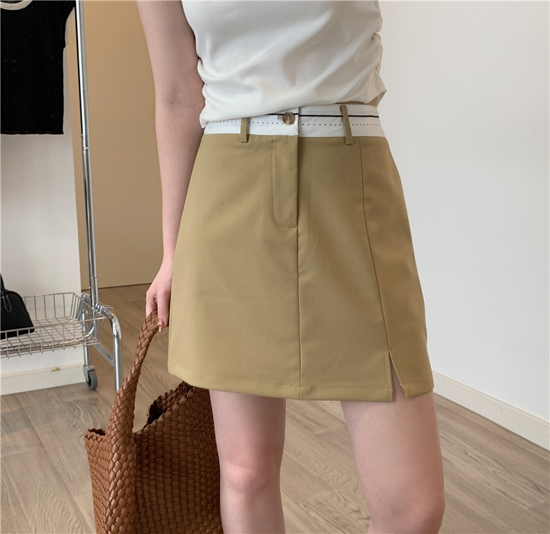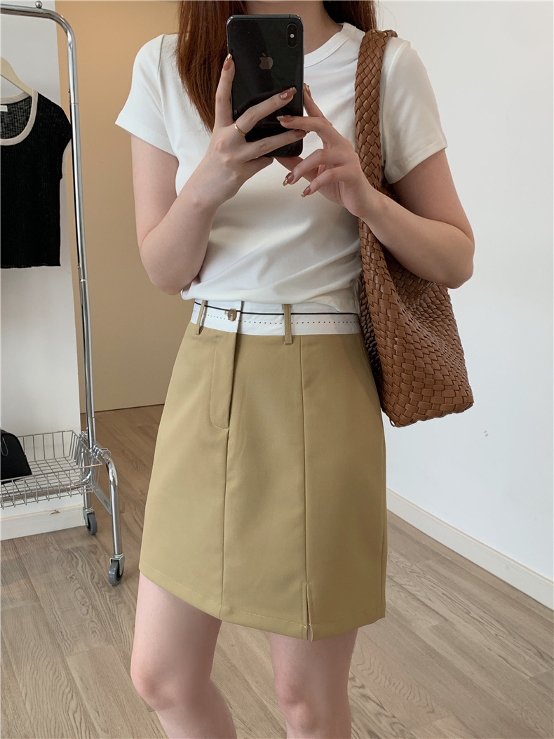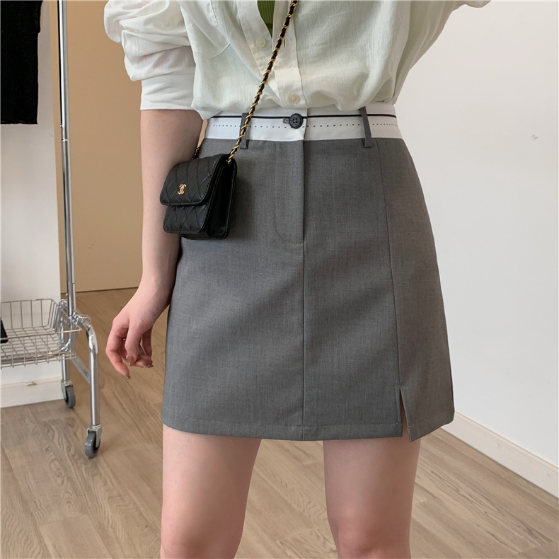 Women's Simple High Waisted Open Forked Suit Short Skirt A-Line Casual Skirt Slimming Half Skirt
