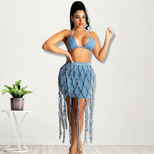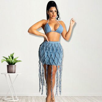 Women Fashion New High Waist Sexy Knit Belt Denim Short Skirt