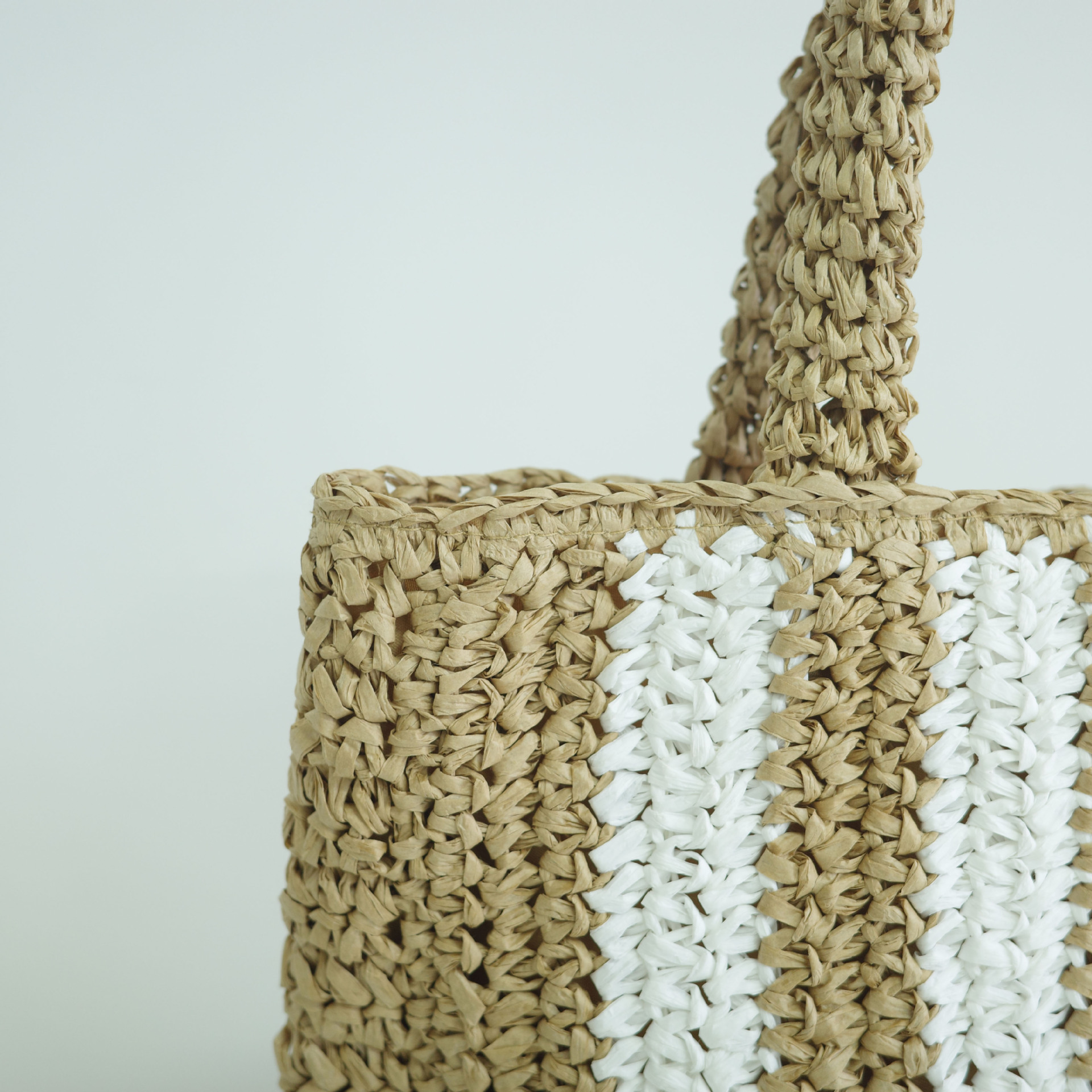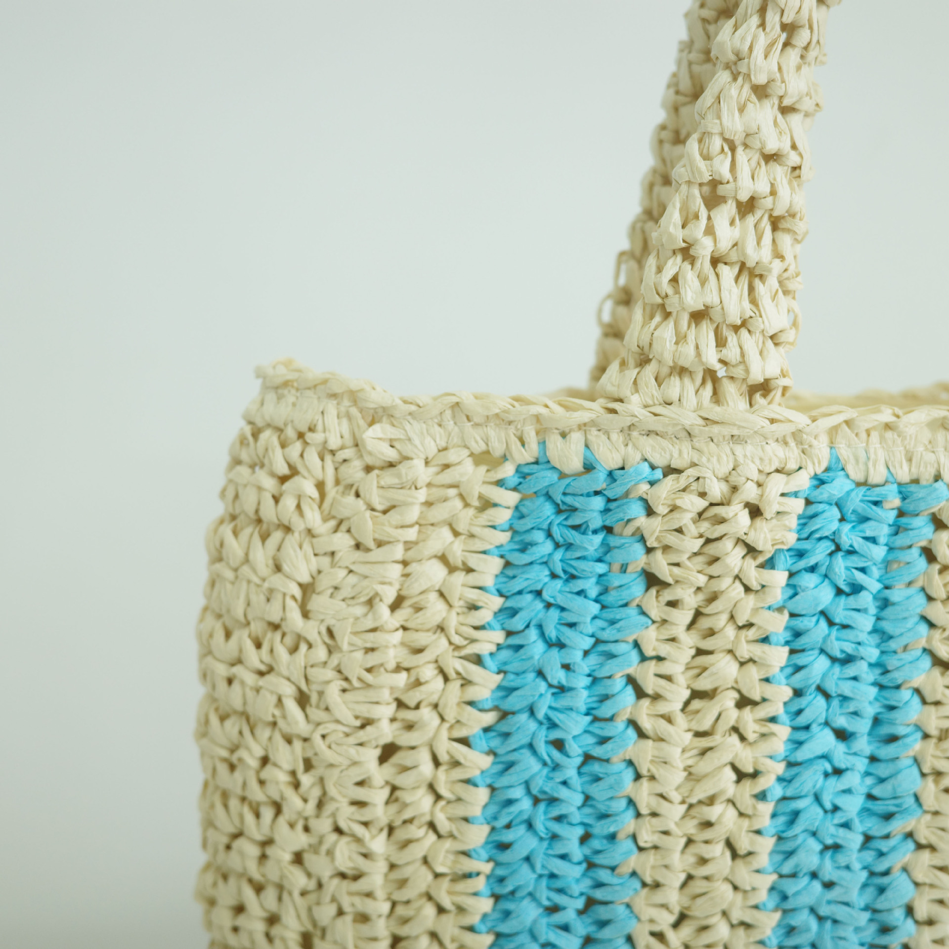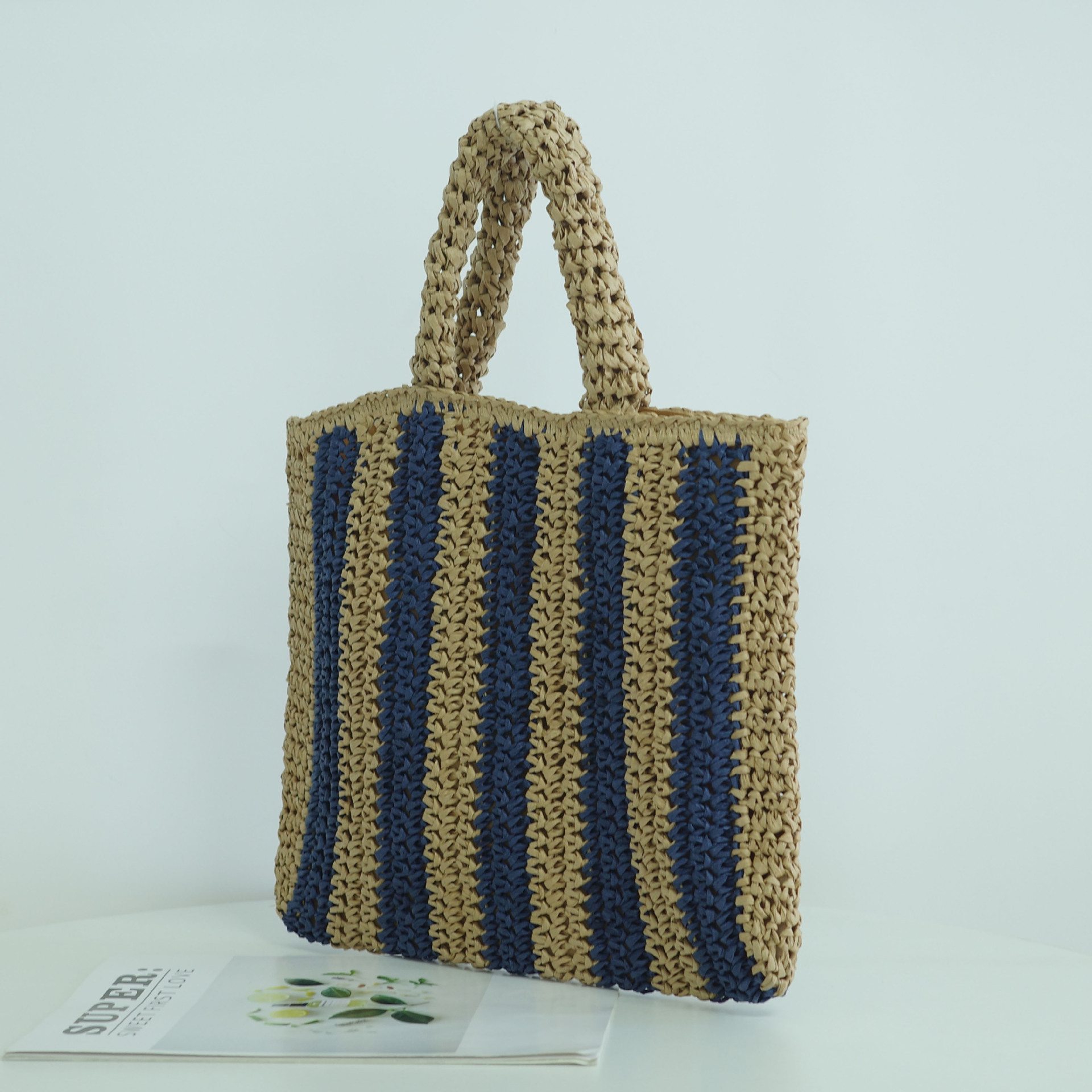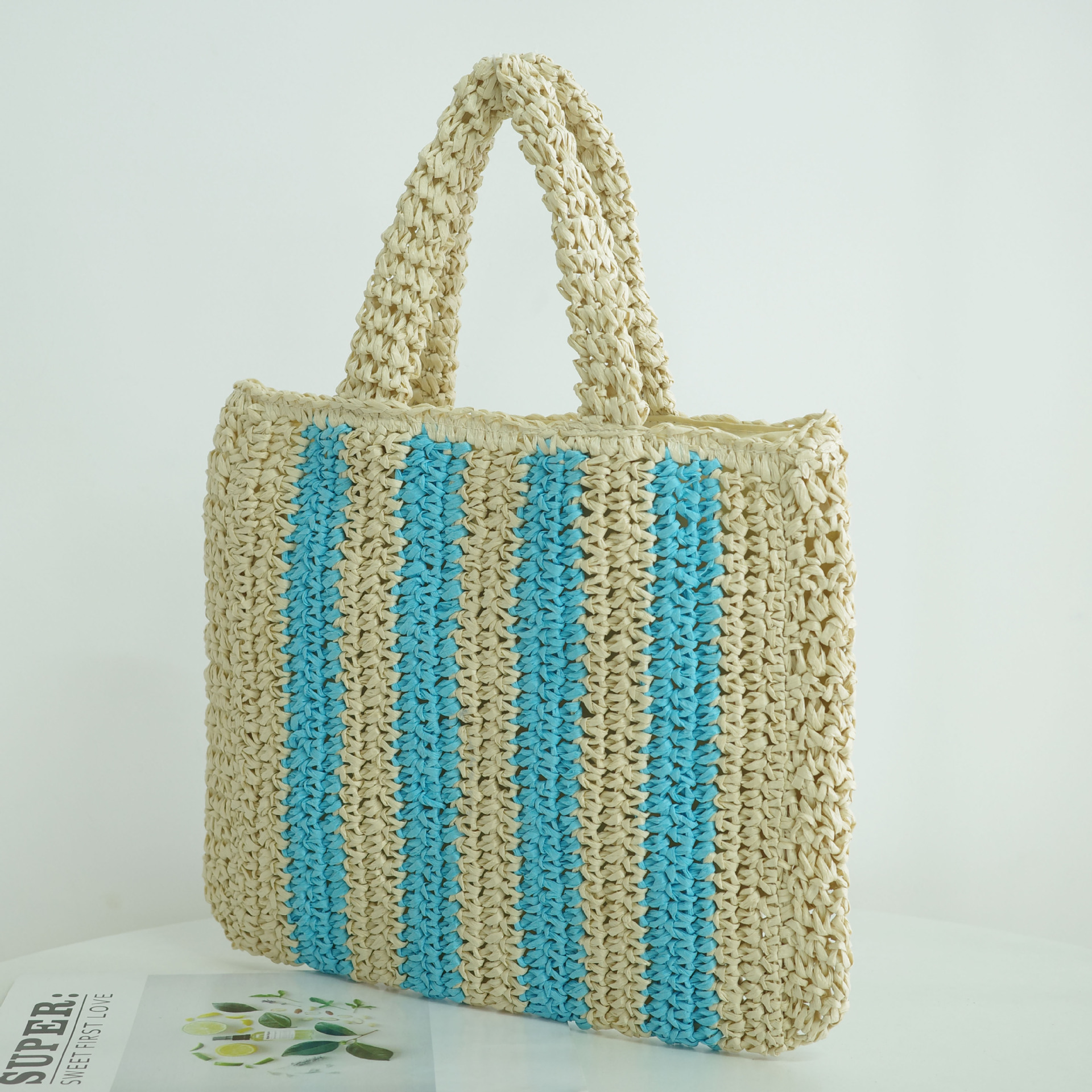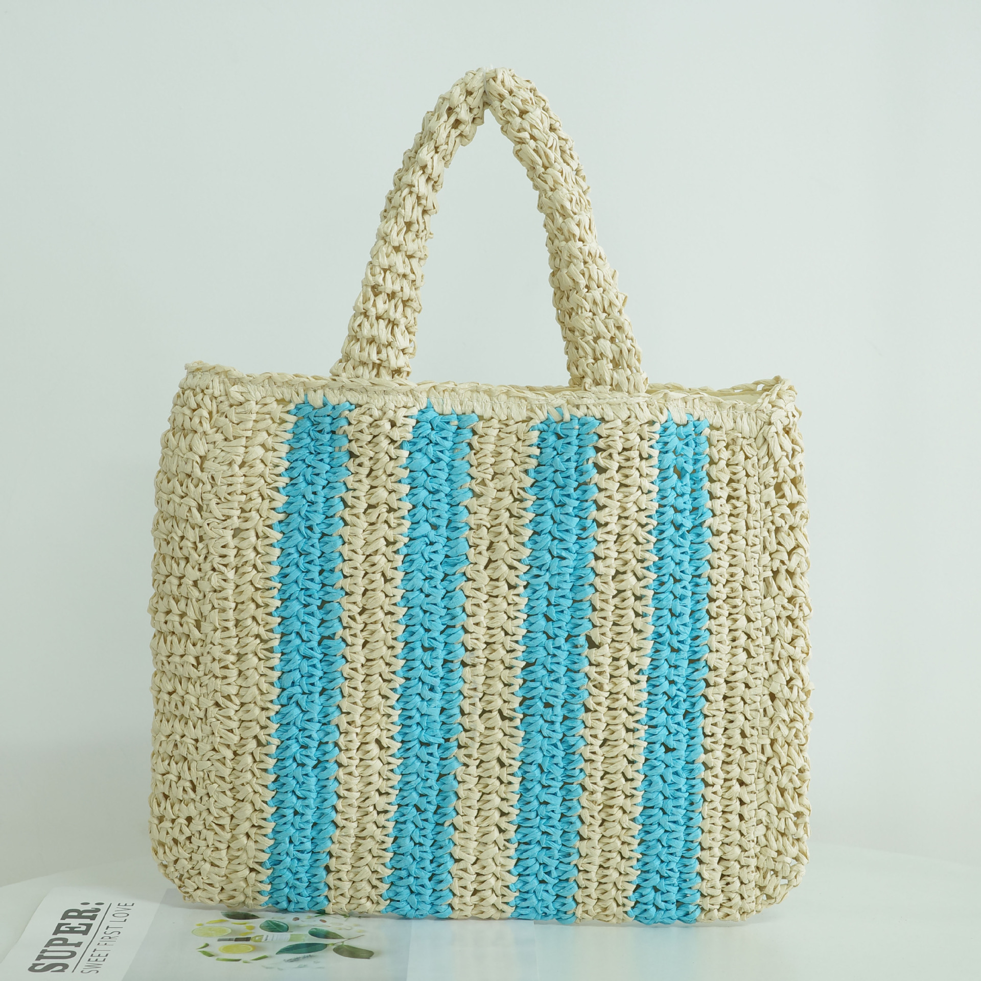 Women's Summer New Boho Style Beach Bag Shoulder Bag Vacation Bag with Hook Stitch Vertical Strip