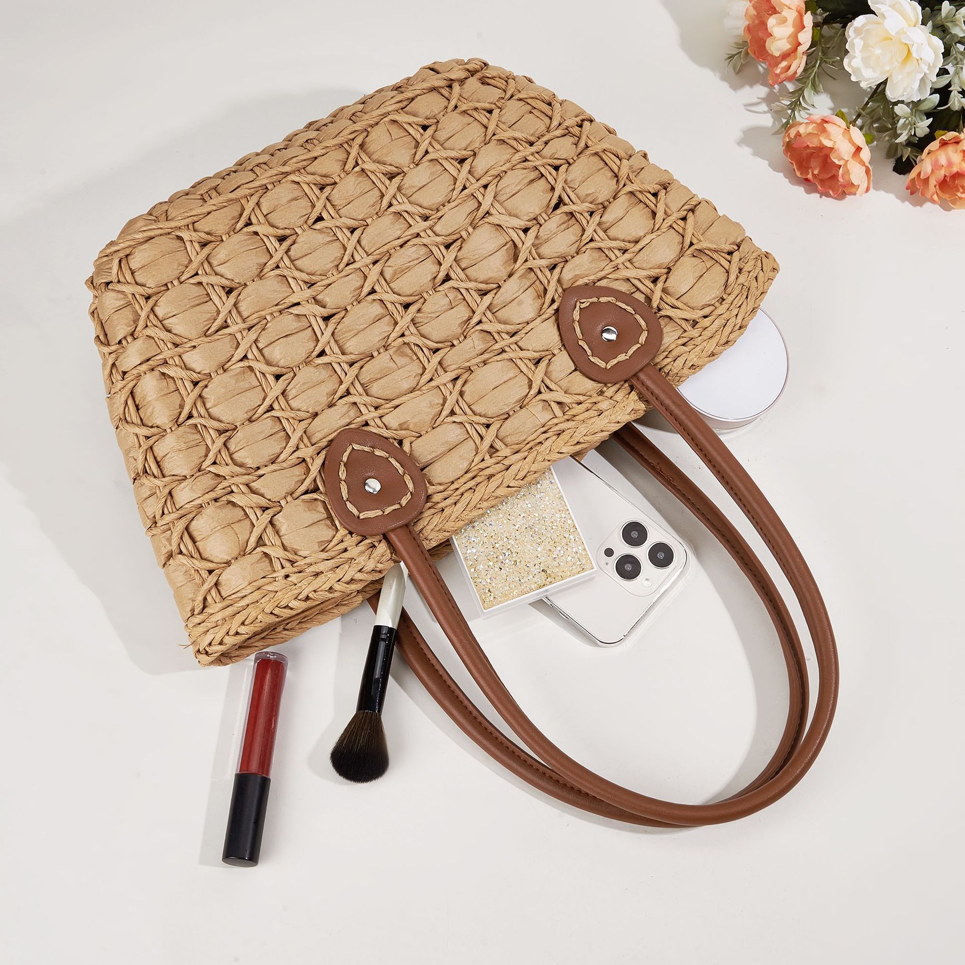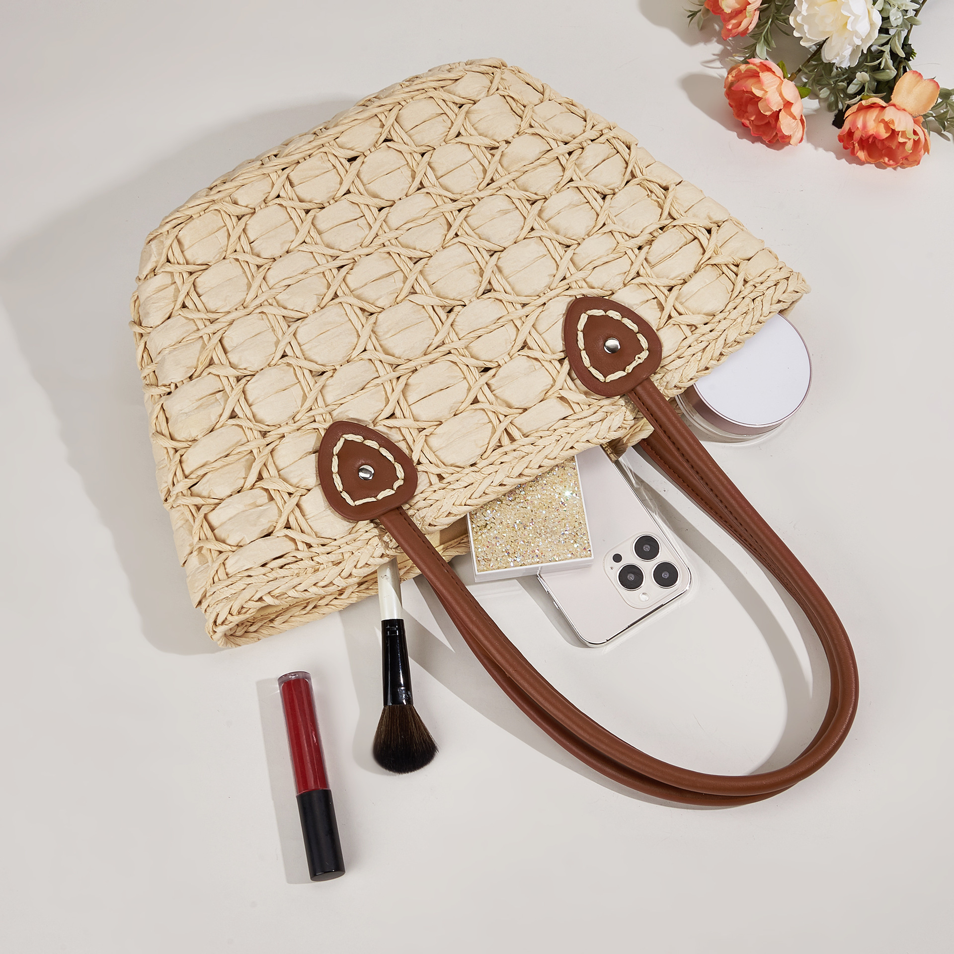 This stylish hand-woven bag is perfect for any occasion. It features a large capacity hollow design, making it perfect for storing all your essentials. The bag is made from high quality paper material, giving it a unique and stylish look. The bag also features a zipper closure and two straps...