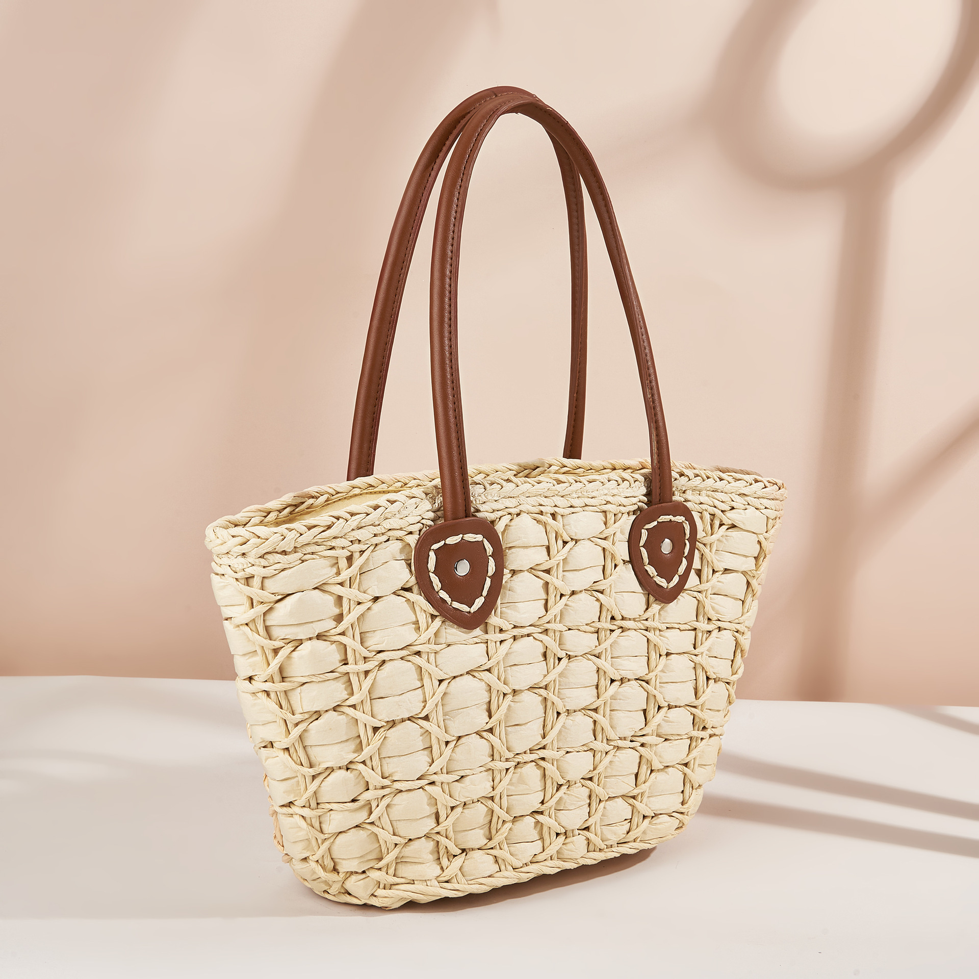 Stylish Hand-woven Bag Beach Bag with Large Capacity Hollow Design