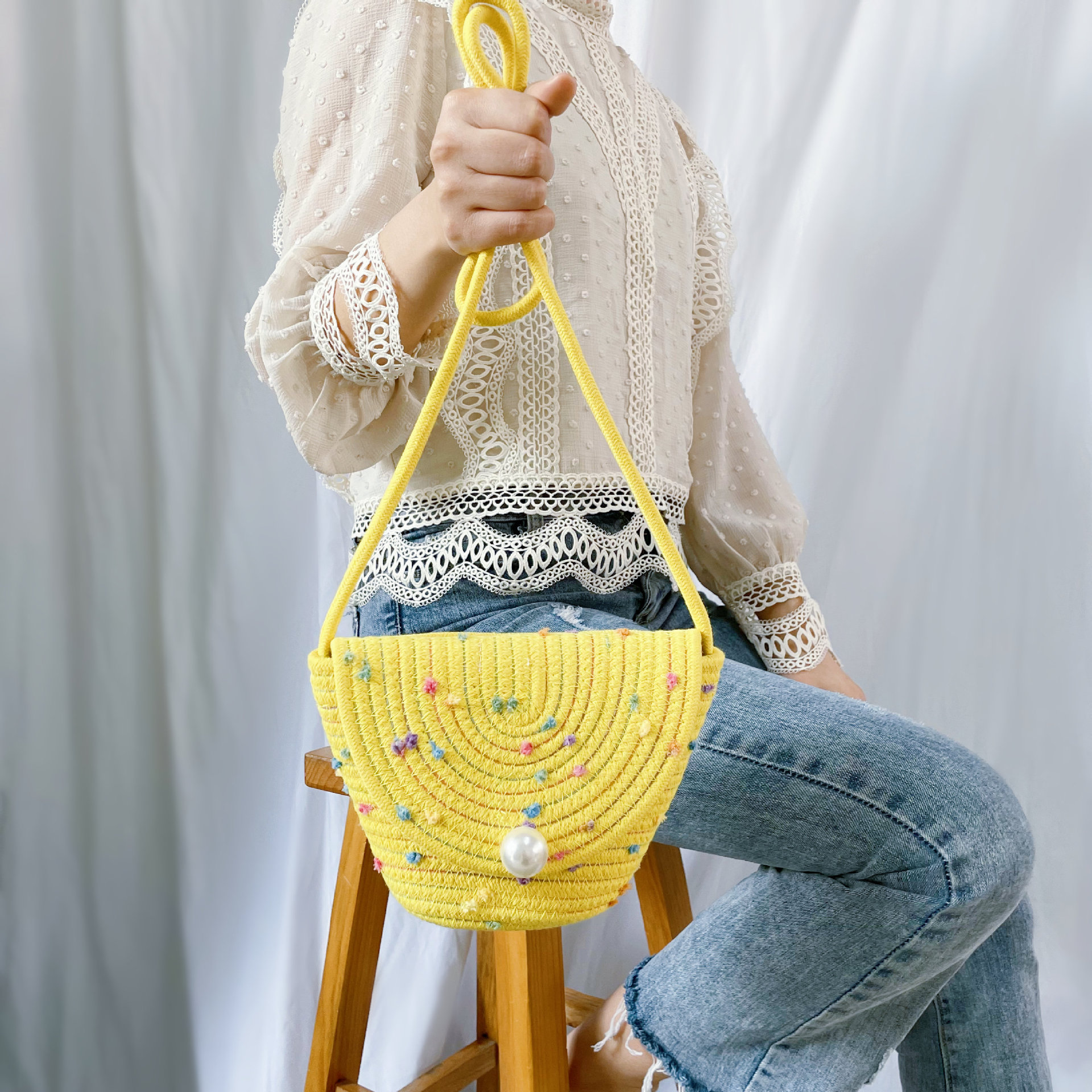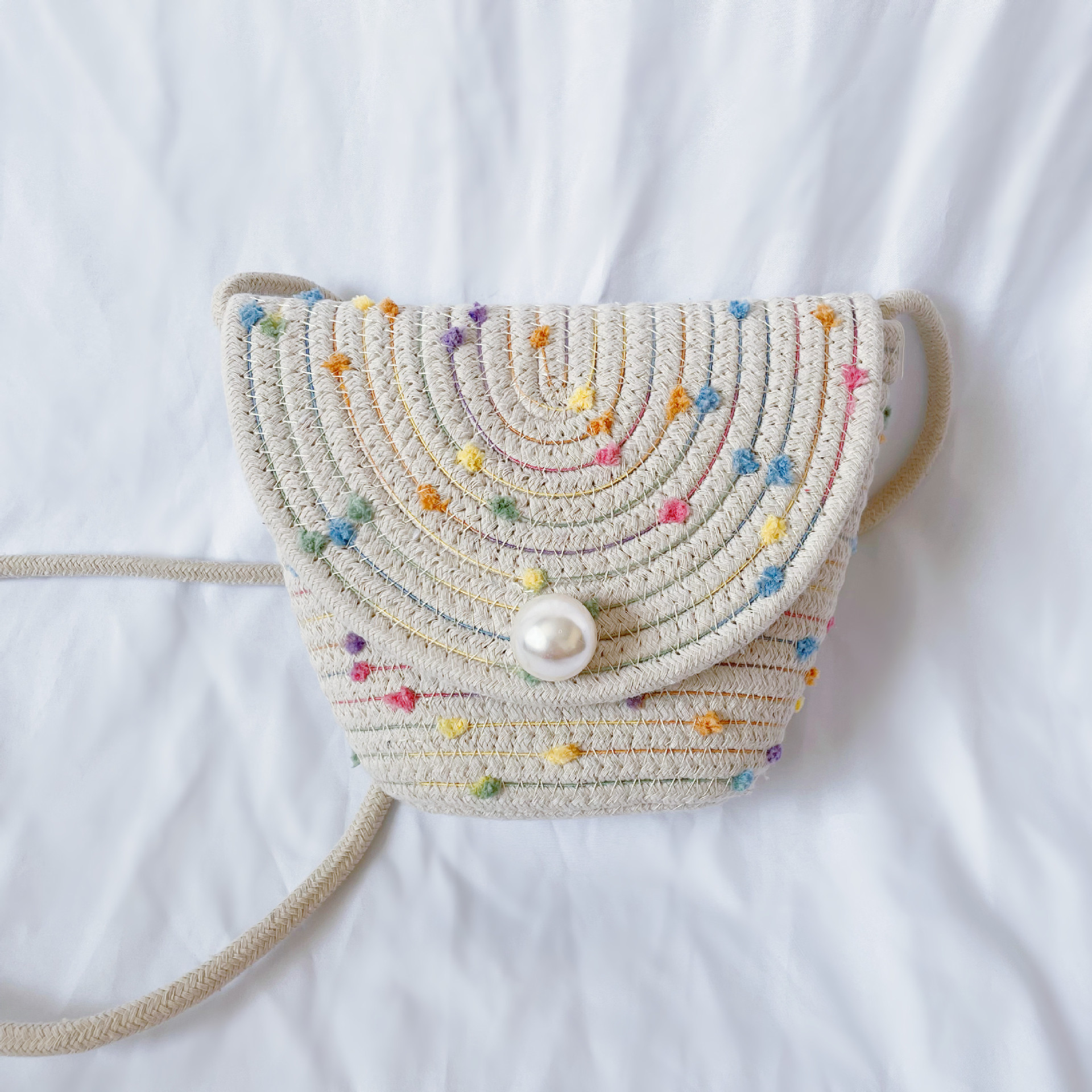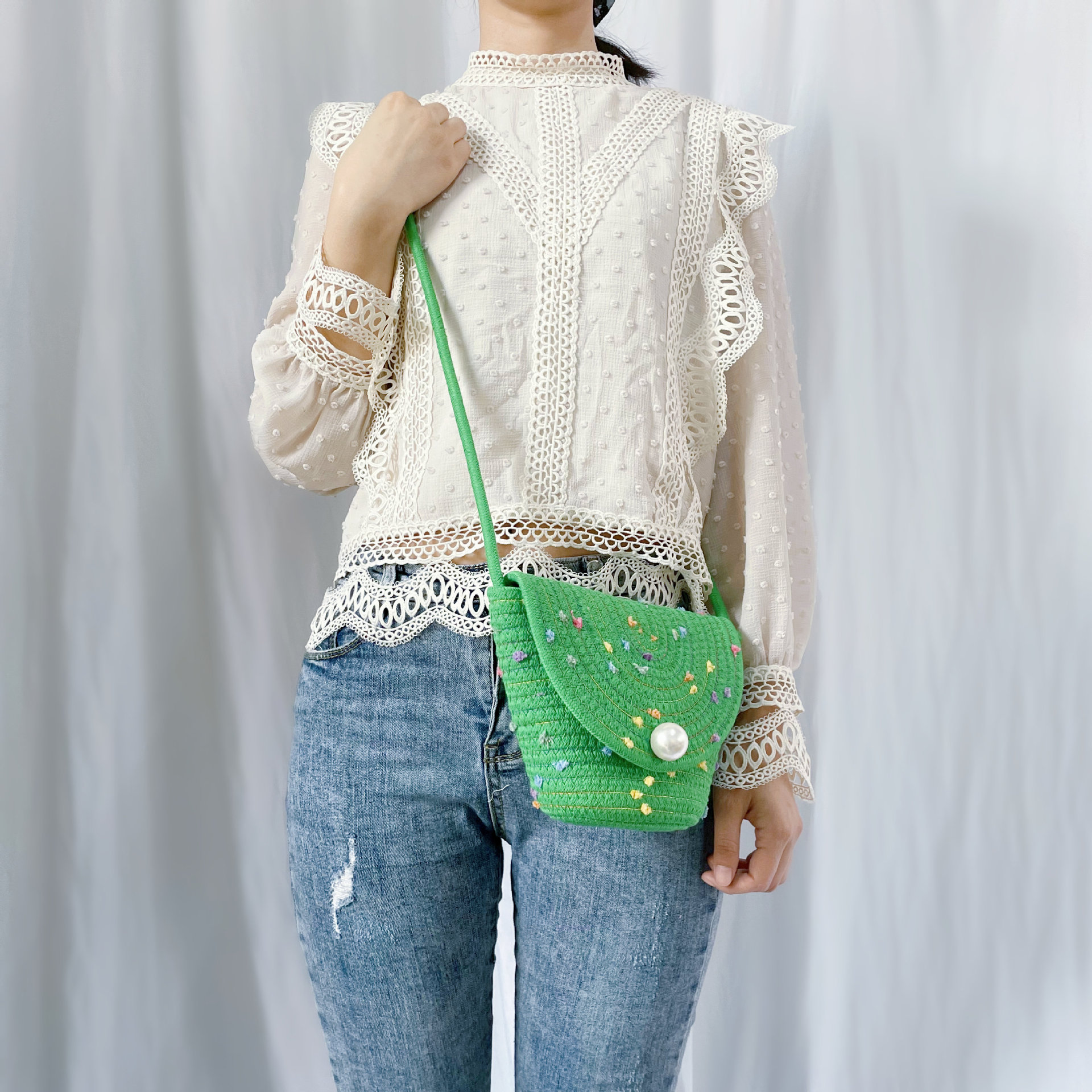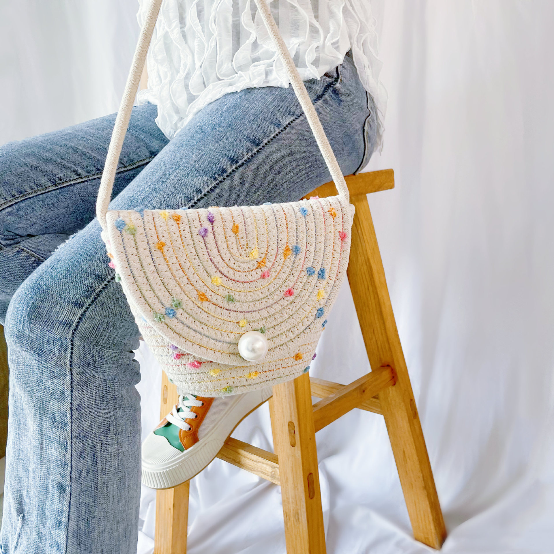 Fashionable Colorful Simple Stylish Crossbody Bag with Pearl Flip Cover and Cotton Rope
