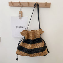 This Striped Grass Weave Bag is a perfect combination of fashion and casual style. It is made of paper material and has a medium size. It has a rectangular shape and drawstring closure. It is soft, lightweight and comfortable to wear. It is perfect for everyday use and beach trips. It is also a great gift for your friends and family.