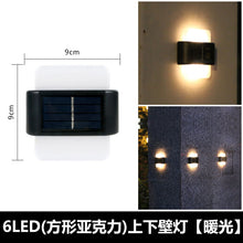 {"Type":"Solar Wall Light","Model":"Up and Down Wall Lamp","Style":"Countryside","Origin":"China","Voltage":"1.2","Imported":"No","Dimensions":"90*90","Rated Power":"5","Switch Type":"Manual","Certification":"None","Patent Status":"No","Protection Level":"IP65","Light Source Type":"LED","Specification Category":"6LED (Round Acrylic) Up and Down Wall Lamp [White Light], 6LED (Round Acrylic) Up and Down Wall Lamp [Warm Light], 6LED (Square Acrylic) Up and Down Wall Lamp [White Light], 6LED (Square Acrylic) Up and Down Wall Lamp [Warm Light]","Continuous Lighting Time":"6-12 hours"}