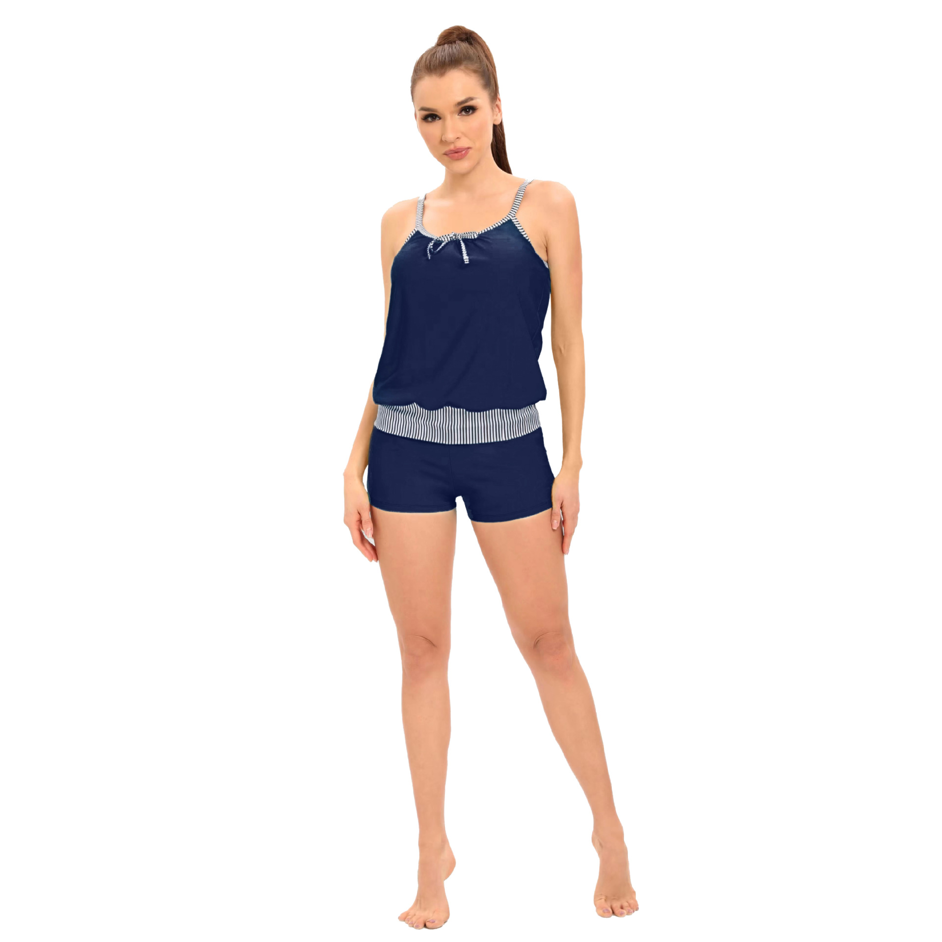 This new tankini swimming suit is perfect for women who want to look stylish and conservative. It is made of 82% polyester and 95% cotton, making it comfortable and breathable. The flat angle bottom pants design is perfect for swimming, and the multiple colors available make it easy to find...