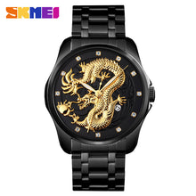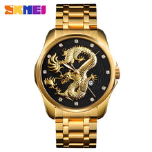 SKMEI Men's Business Calendar Watch with Stainless Steel Strap and Dragon Totem Relief