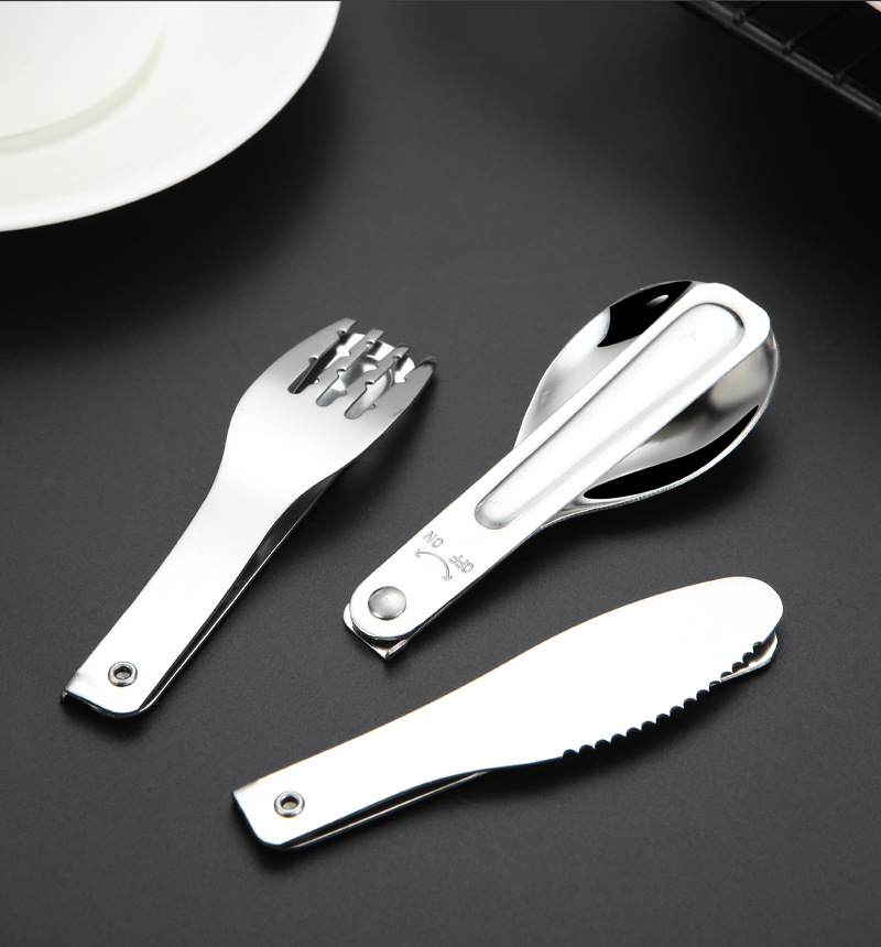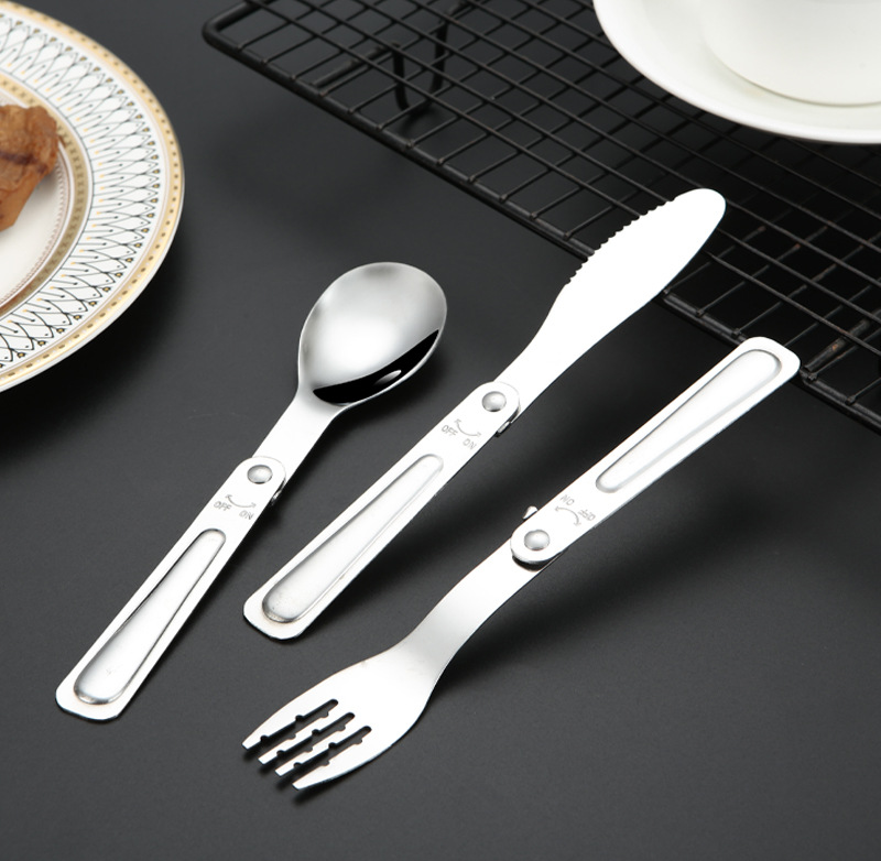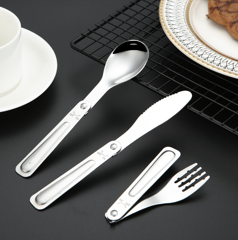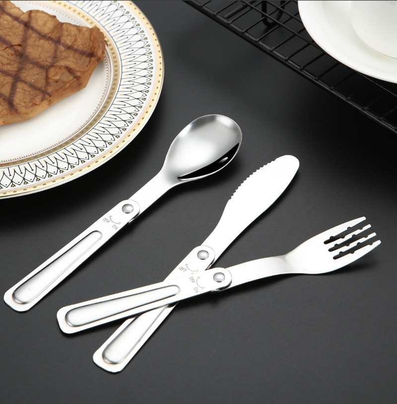 This stainless steel folding knife fork spoon set is perfect for camping and outdoor activities. It is made of high quality stainless steel, which is rust-proof and durable. The set comes with a knife, fork and spoon, all of which can be folded for easy carrying. It is also a great gift for your friends and family. Get your stainless steel folding knife fork spoon set today!