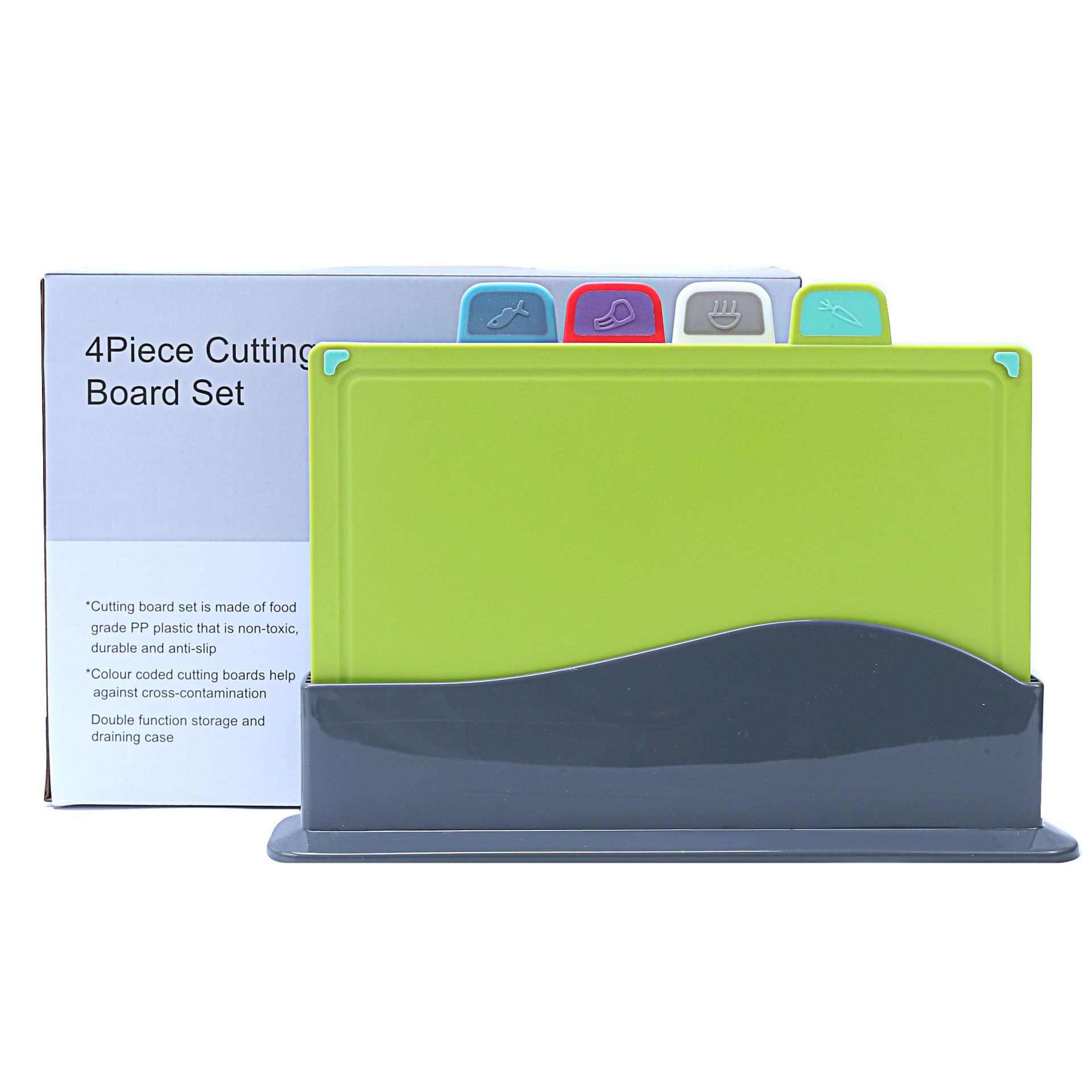 4 Pieces Plastic Classification Plate with Rack Set, Fresh and Cooked Classification Plastic Plate, Chopping Board