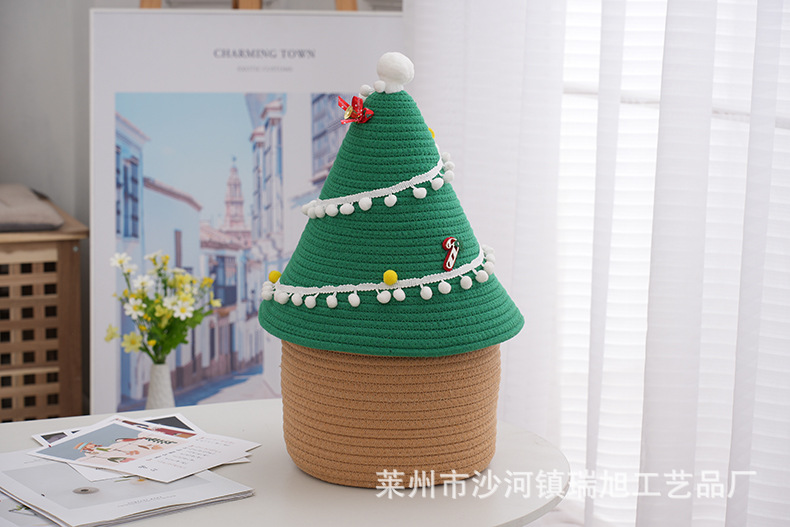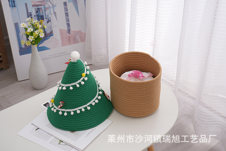 Nordic Christmas Tree Cotton Line Storage Basket with Cover Knitting Desktop Snacks Toys Bedside Cosmetics Storage Basket