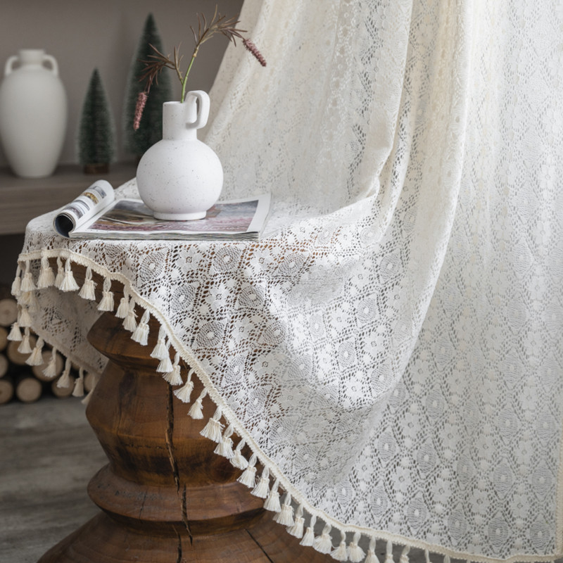Luxury Nordic Ins Cotton Curtain with 20% Lace and 80% Cotton for Living Room, Bedroom, Dinning Room and Commercial Space