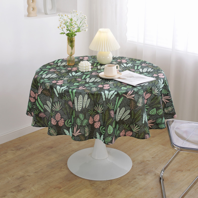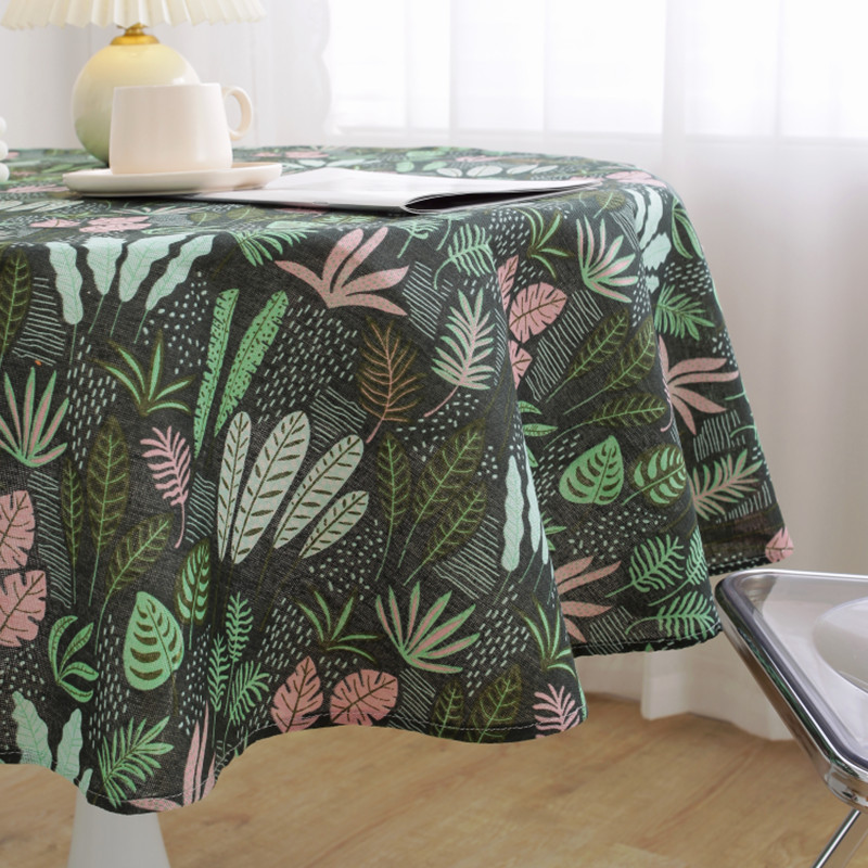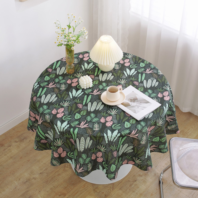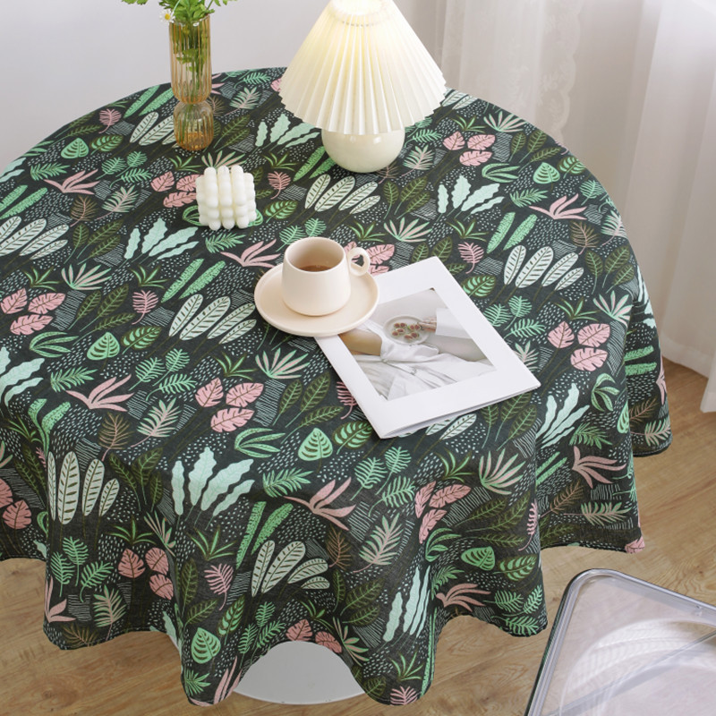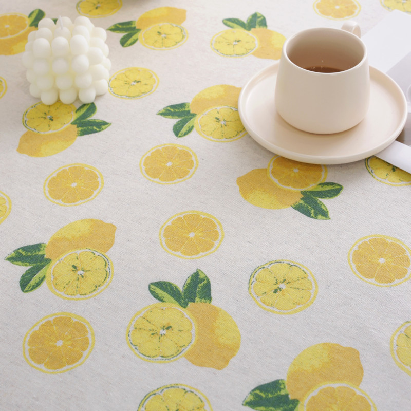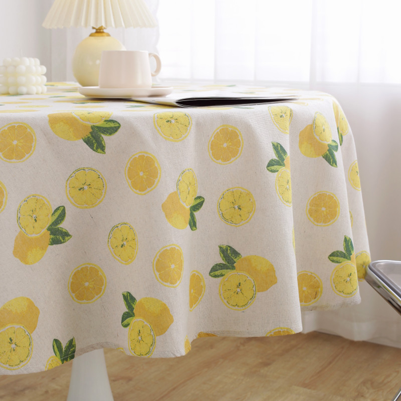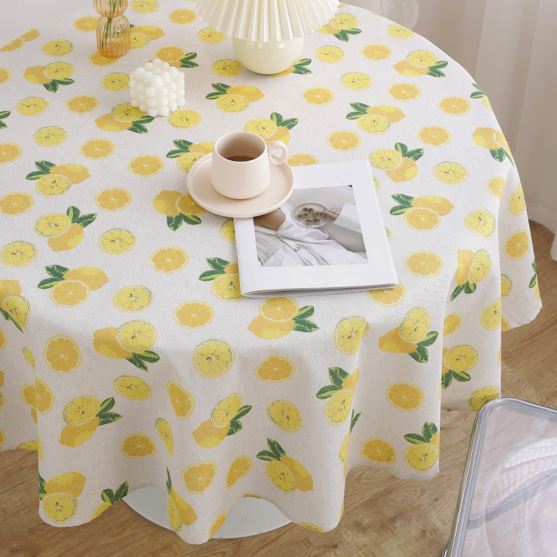Lemon Print Cotton Tablecloth with 80% Cotton and 20% Polyester Blend, Nordic Style, Round Shape, for Home Decor