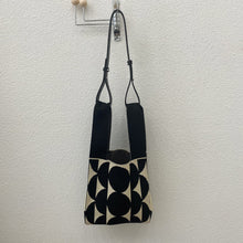 Women's Geometric Black Knit Shoulder Bag with Drawstring Closure